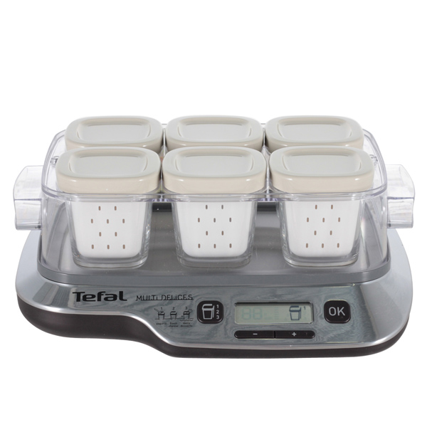 Долго выбирала между 12 и 6 баночками, из-за нехватки места взяла на 6. Готовила йогурты, творожки и домашний творожный сыр по рецептам, потом быстро перешла на собственные эксперименты - результаты всегда замечательные (пробовала делать и сметану из сливок 33%, и несколько раз делала ряженку из покупного жирного топленого молока на сметанной закваске - супер!). Творог получается наподобие "советского диетического" в кишке - по консистенции, но вкус значительно приятнее. Что сказать -свежие молочные продукты, сделанные из качественного сырья без консервантов и красителей, которые можно сделать нужной жирности - это не может быть невкусно. Согласна, что несколько напрягают трудно открывающиеся баночки. Мою банки в посудомойке, поэтому проблем с отмыванием пока нет. "Но"- только одно, оно же - достоинство для кого-то - на семью из 3 человек катастрофически не хватает 6 баночек! Если есть возможность найти место -берите на 12! Творог/сыры готовятся 16-18 часов, потом еще отстаивать до нужной консистенции - за это время йогурт уже не приготовить. Творога получается совсем немного - на троих мало! Йогурты-ряженки такие вкусные, что просто "улетают", хранить не более 7 дней просто не получается! Но пока банку с йогуртом не опустошить, сметану или творог не сделаешь опять-таки... А перекладывать йогурт нельзя-нарушается замечательный йогуртный сгусток. Вывод - нужны еще банки, подобрать что-то нереально, т.к. они специфические очень и квадратные! Если бы можно было к такой компактной йогуртнице докупить пару комплектов банок, чтобы кушать йогурты, хранить пару банок сметаны и параллельно делать творог или сыр - тогда это был бы идеальный прибор.