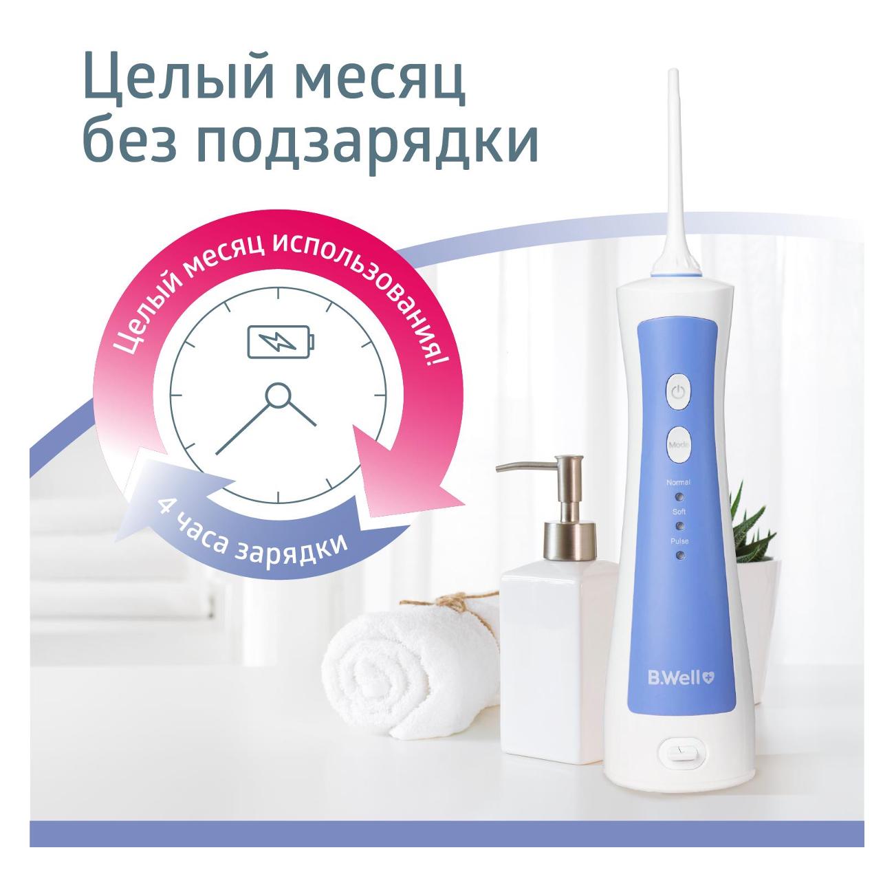 Ирригатор B.Well PRO-911 предназначен для эффективного регулярного ухода за ротовой полостью. Частота пульсации настраивается в пределах от 1400 имп/мин до 1800 имп/мин, давление воды — 206-758 кПа. Объем резервуара для воды составляет 150 мл.