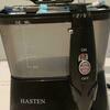 Ирригатор Hasten HAS855 с пластиковым корпусом черного цвета подает струю по принципу импульса. Он оснащен поворотным регулятором для настройки интенсивности потока в диапазоне от 1400 до 1700 имп/мин. Доступно 10 режимов работы. Минимальное давление составляет 210 кПа, а максимальное ― 870 кПа. На всех уровнях мощности возможен запуск опции массажа.