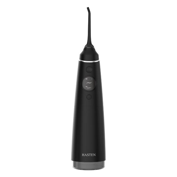 Ирригатор Hasten HAS875 оснащен влагоустойчивым корпусом черного цвета. В него интегрирован OLED-дисплей, отображающий текущие настройки. Доступно четыре режима работы, в том числе и массаж. В комплектацию входит шесть насадок, пластиковый кейс для их хранения и текстильный чехол. Прибор весит 300 г, его габариты равны 6,3х22х7,1 см.