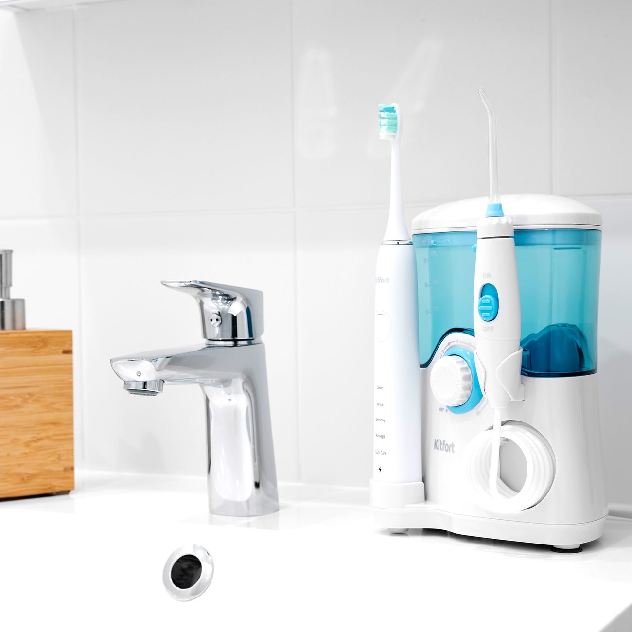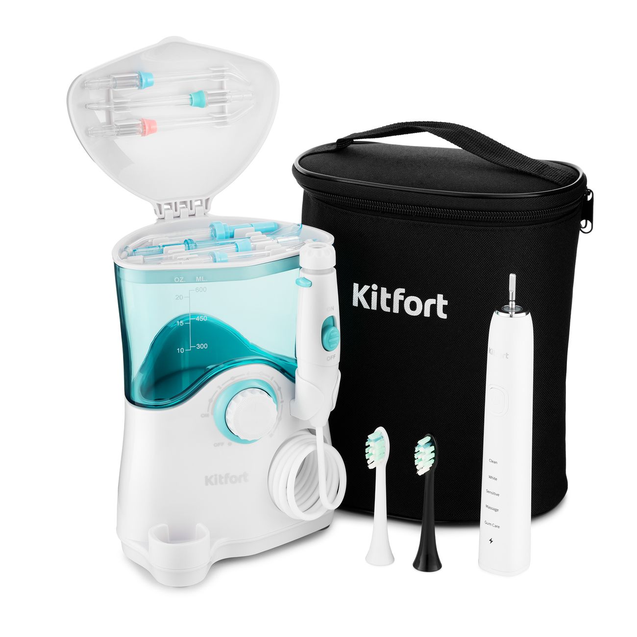 Попал на Kitfort KT-2904, начал изучать отзывы, люди отзывались хорошо, ну и я решил заказать, и знаете, не прогадал! Это прекрасный ирригатор, комплект хороший, поставляется в сумочке, что удобно при транспортировке.