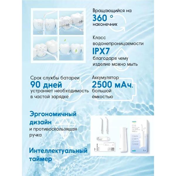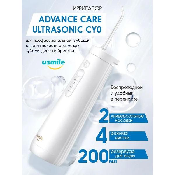 Портативный ирригатор полости рта usmile Soft Care Ultrasonic CY0, белый, снабжен емкостью для воды объемом 0,2 л. Модель выполнена в пластиковом водостойком корпусе специальной конструкции для настольного размещения. Относится к IPX7-классу защиты. Ирригатор обладает габаритными размерами 7,5х22,4х5,5 см. Вес составляет 325 г.