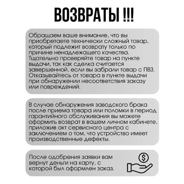 * на товаре возможно наличие неоднородности окраса пластика и микроцарапин, которые не являются недостатком