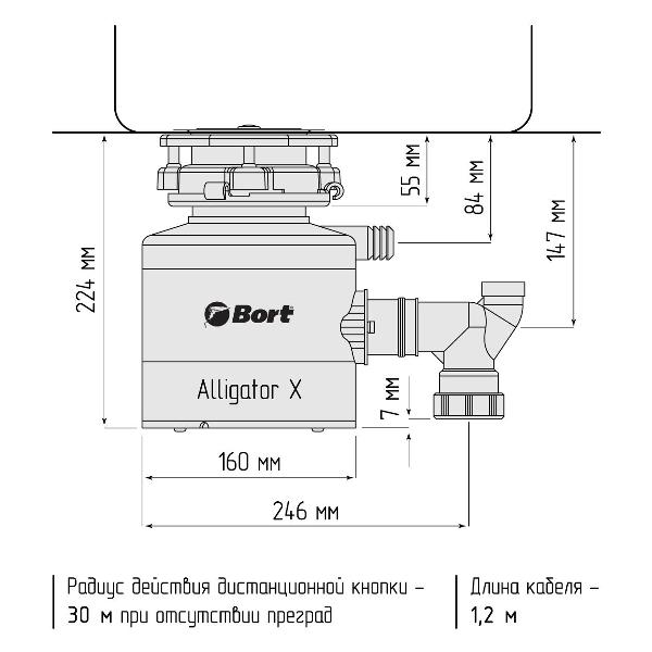 Измельчитель пищевых отходов Bort 93414707 обладает мощностью 560 Вт, при которой достигается скорость вращения диска до 1680 об/мин. Параметр производительности равен 4,2 л/мин. Двигатель аппарата (0,75 л.с.) гарантирует долгую работу. В модели предусмотрено три скорости, которые можно изменять посредством электронной панели. Уровень шума в процессе эксплуатации не превышает 54 дБ.