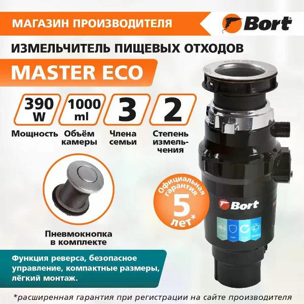 Вы можете купить Измельчитель пищевых отходов Bort MASTER ECO в магазинах М.Видео по доступной цене. Измельчитель пищевых отходов Bort MASTER ECO: подробное описание, фото и отзывы реальных покупателей, характеристики, возможность скачать инструкции и подобрать аксессуары.