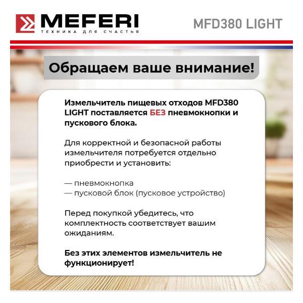 Вы можете купить Измельчитель пищевых отходов MEFERI MFD380 LIGHT в магазинах М.Видео по доступной цене. Измельчитель пищевых отходов MEFERI MFD380 LIGHT: подробное описание, фото и отзывы реальных покупателей, характеристики, возможность скачать инструкции и подобрать аксессуары.