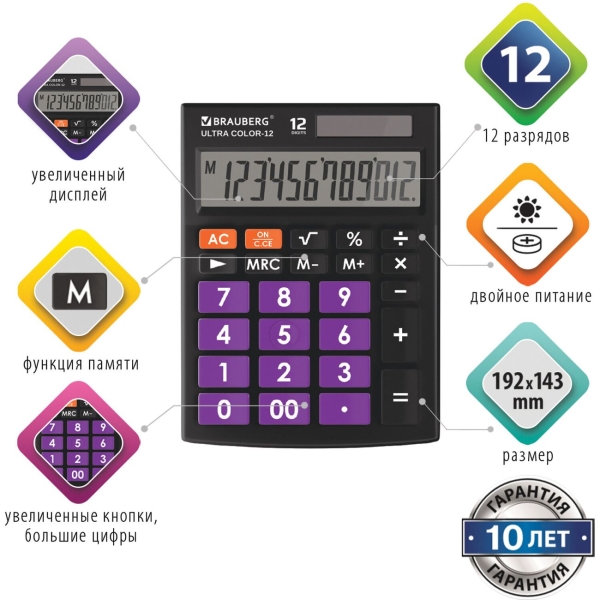 Вы можете купить Калькулятор Brauberg ULTRA COLOR-12-BKPR (250501) в магазинах М.Видео по доступной цене. Калькулятор Brauberg ULTRA COLOR-12-BKPR (250501): подробное описание, фото и отзывы реальных покупателей, характеристики, возможность скачать инструкции и подобрать аксессуары.
