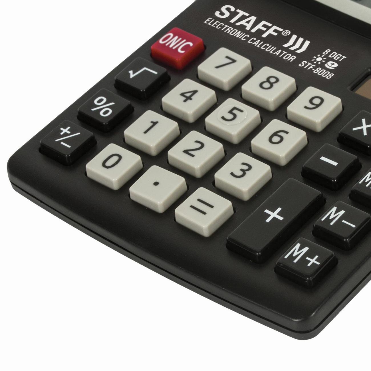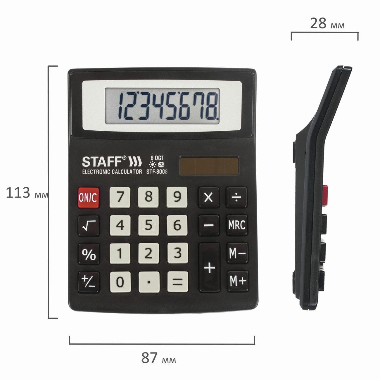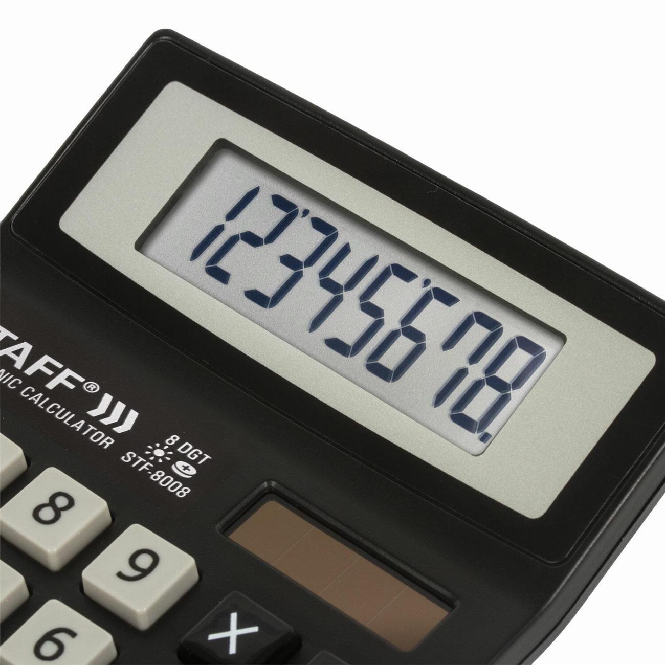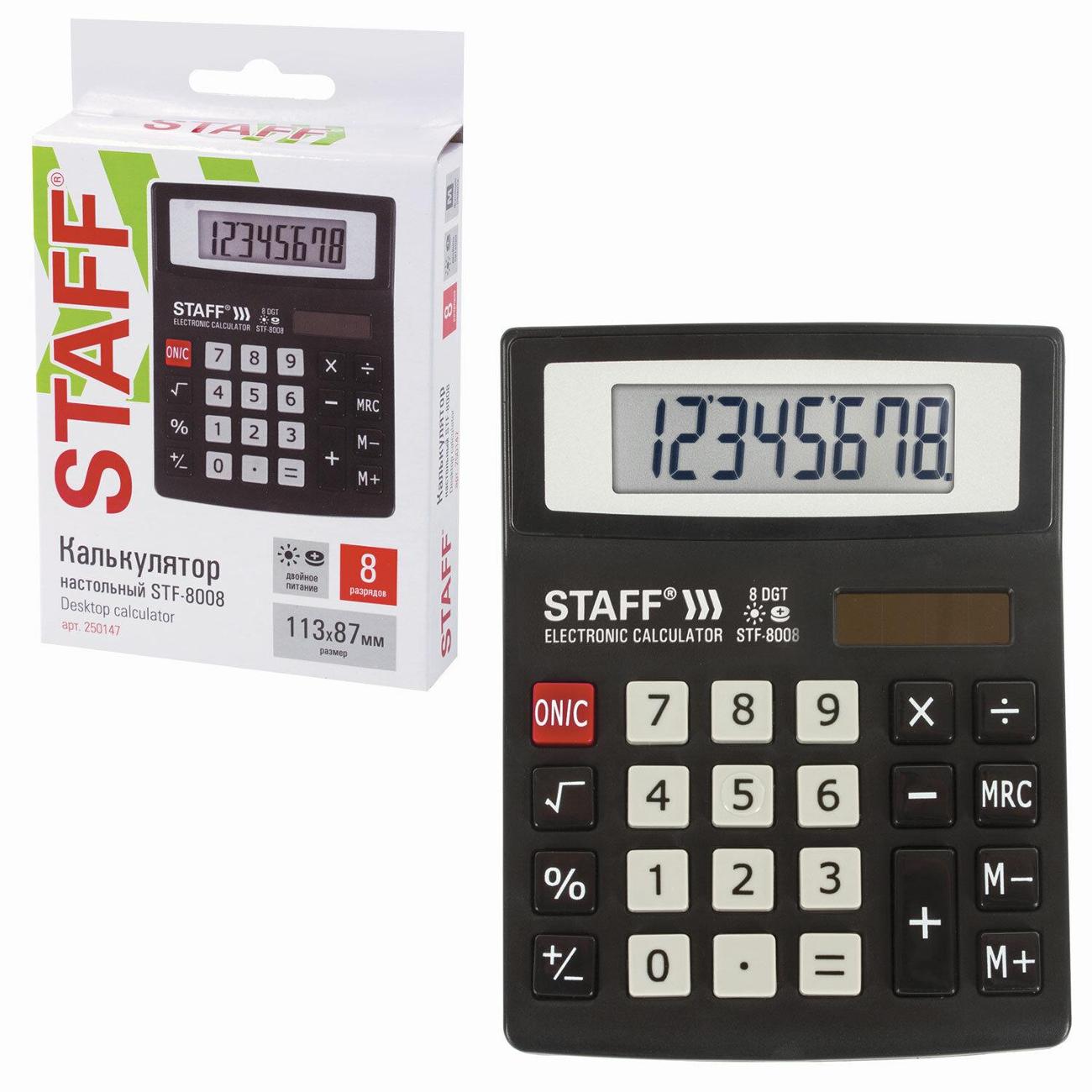 Вы можете купить Калькулятор Staff STF-8008 в магазинах М.Видео по доступной цене. Калькулятор Staff STF-8008: подробное описание, фото и отзывы реальных покупателей, характеристики, возможность скачать инструкции и подобрать аксессуары.