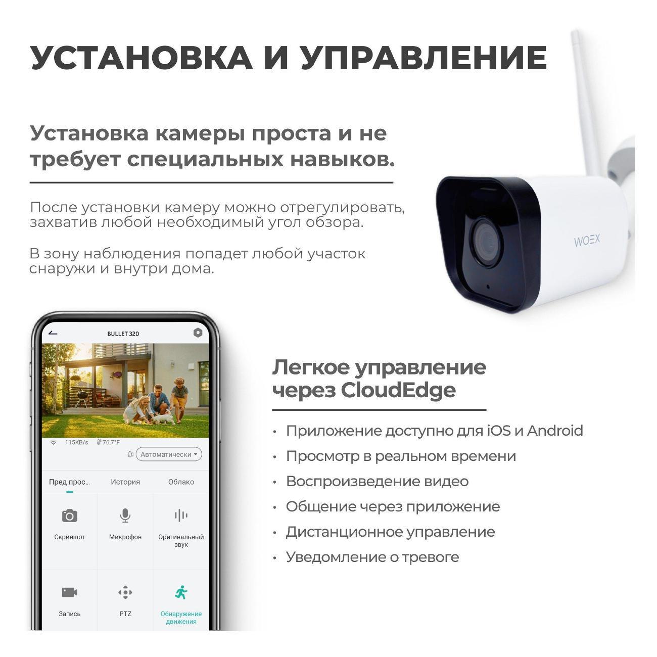 Камера видеонаблюдения уличная Wi-Fi Bullet 320 от бренда WOEX — это эффективное и удобное решение для круглосуточного контроля за вашим участком, домом или офисом. Эта видеокамера объединяет в себе современные технологии, простоту использования и высокую надежность.