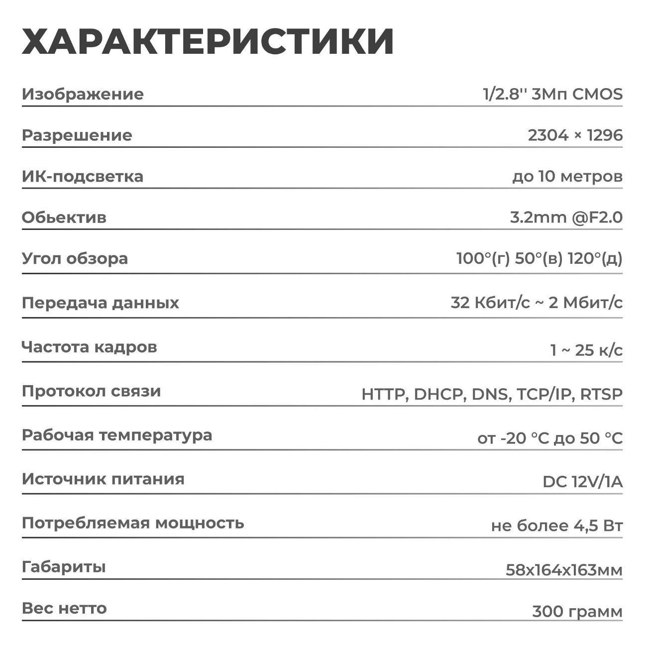 С обзором 100° по горизонтали, 50° по вертикали и 120° по диагонали, камера охватывает значительное пространство, исключая "слепые зоны".