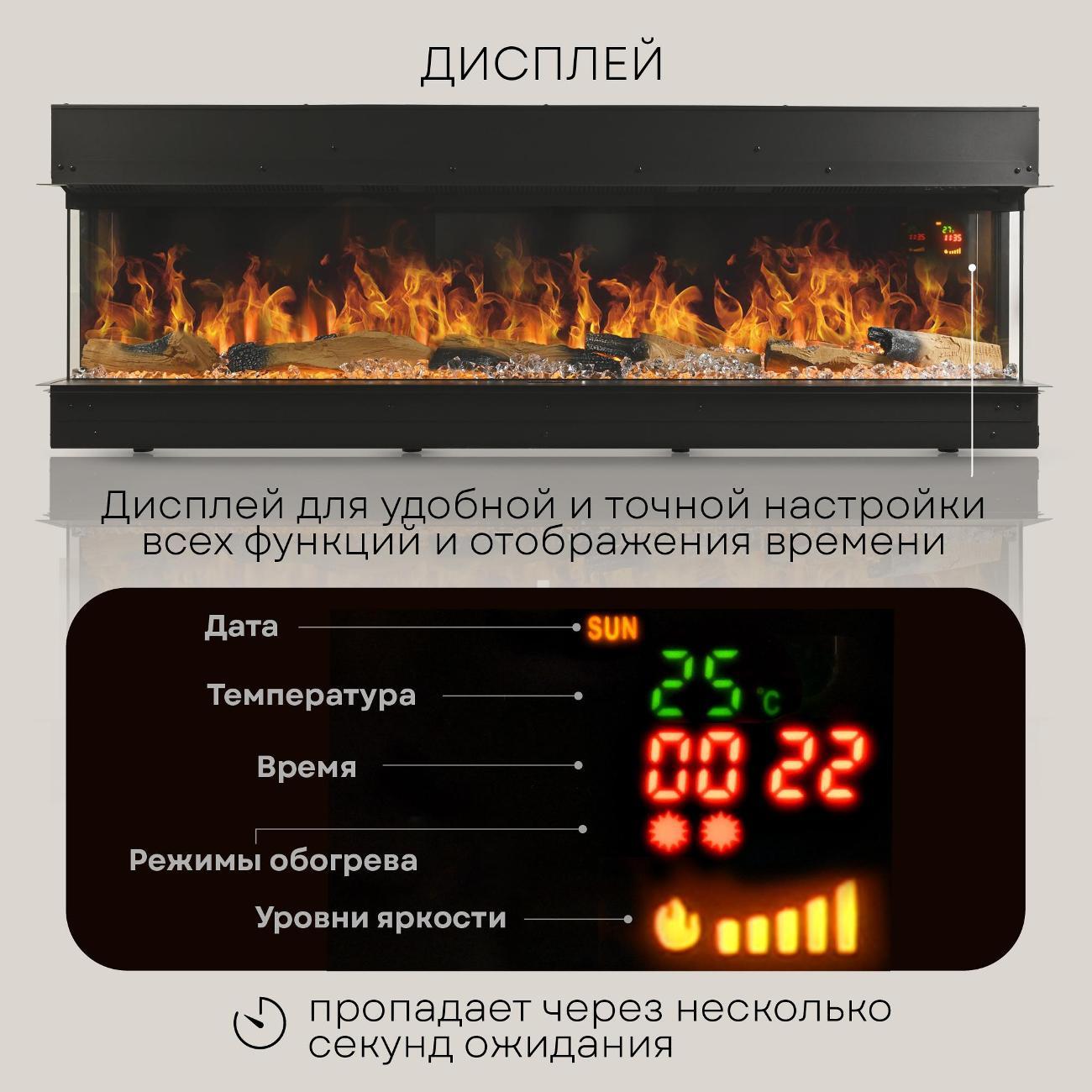Можно установить кристаллы или дрова во время горения, мне больше нравятся дрова, смотрится более натурально. Так же есть несколько уровней регулировки пламени, все красивые.