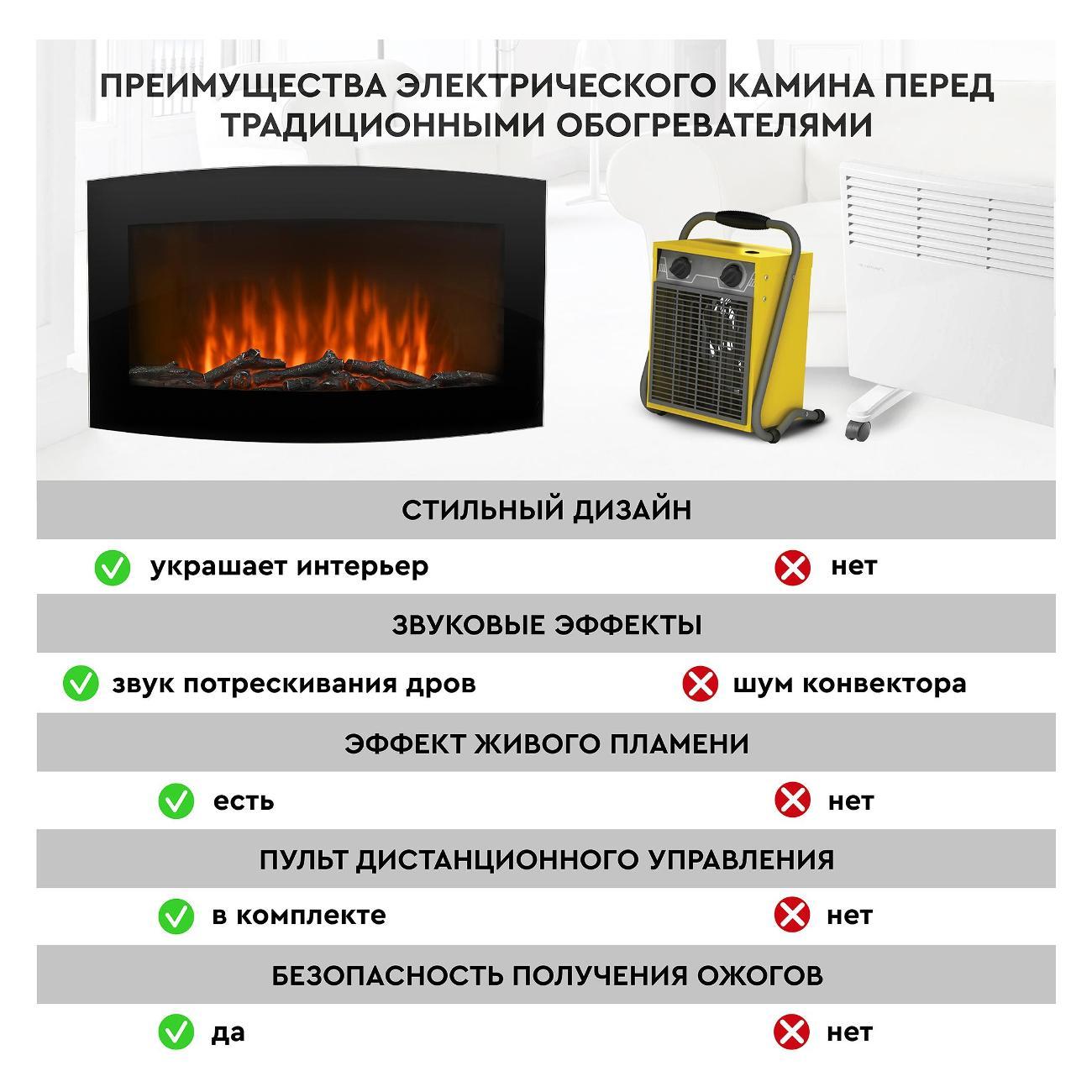 Встроенный термостат позволяет автоматически поддерживать комфортную температуру в помещении. Регулировка яркости пламени дает возможность создать подходящее освещение. Дополнительное удобство в использовании камина добавляет таймер со звуковым сигналом и режим «Без нагрева».