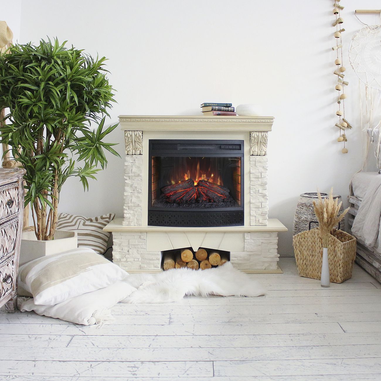 Электрический камин RealFlame Rockland LUX 25/25,5 WT+Firefield 25 SIR можно использовать в качестве источника отопления для помещений площадью не более 17 м². Модель требует создания отверстий для монтажа, легко устанавливается на пол возле стены. Подключается к бытовой электрической сети напряжением 220 В при помощи кабеля с вилкой. Предельный показатель энергопотребления равен 1700 Вт.