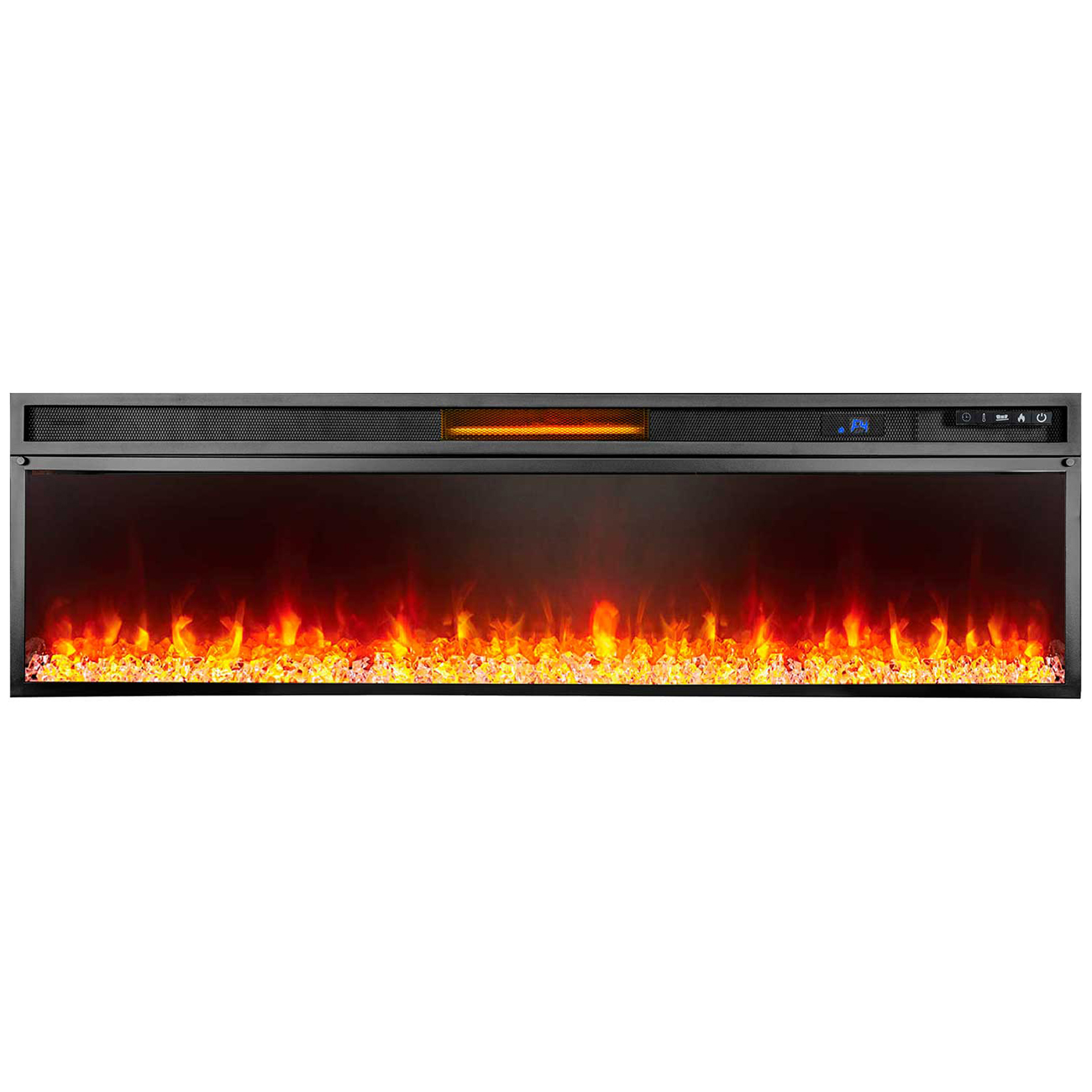 LED-лампочки создают максимальную реалистичность изображения пламени. Люблю любоваться всеми четырьмя вариантами подсветки кристаллов. Когда выключаешь камин, подсветка начинает постепенно затухать. С помощью цифровых индикаторов получаю оповещения о заданных настройках. Степеней обогрева всего шесть, выбор следует делать в зависимости от площади помещения, что очень удобно. Имеется таймер, с помощью которого мы устанавливаем время работы.