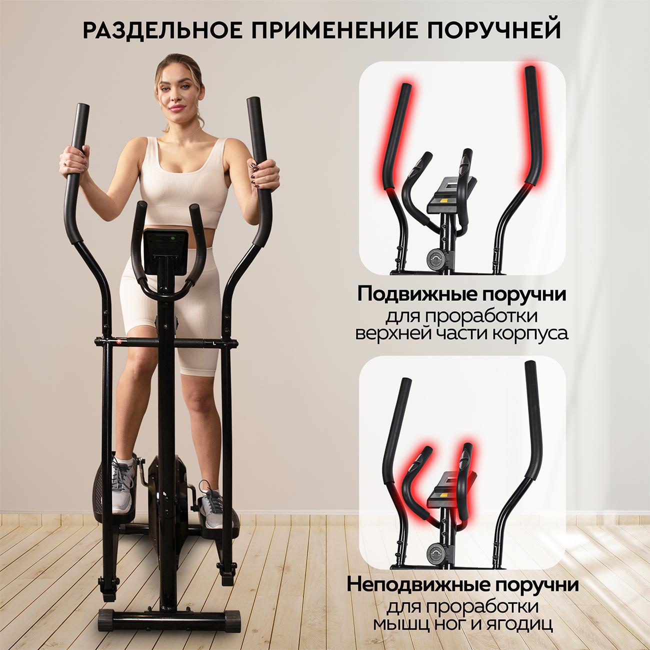Кардиотренажер Planta FD-Е500, черный — эллипсоид с задним приводом, который включает три функции разных тренажеров с задействованием всех групп мышц одновременно: беговой дорожки, велотренажера и степпера. Максимальная нагрузка на устройство не должна превышать 110 кг.