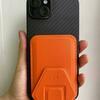 Картхолдер для телефона Magssory ACL001 Orange крепится на заднюю панель iPhone и вмещает до трех карточек. Аксессуар крепко фиксирует карты, так что они точно не выпадут в дороге, и защищает их от пыли и грязи.