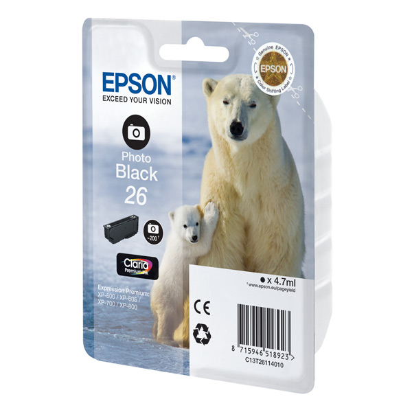 Вы можете купить Картридж для струйного принтера Epson Photo Black 26 в магазинах М.Видео по доступной цене. Картридж для струйного принтера Epson Photo Black 26: подробное описание, фото и отзывы реальных покупателей, характеристики, возможность скачать инструкции и подобрать аксессуары.