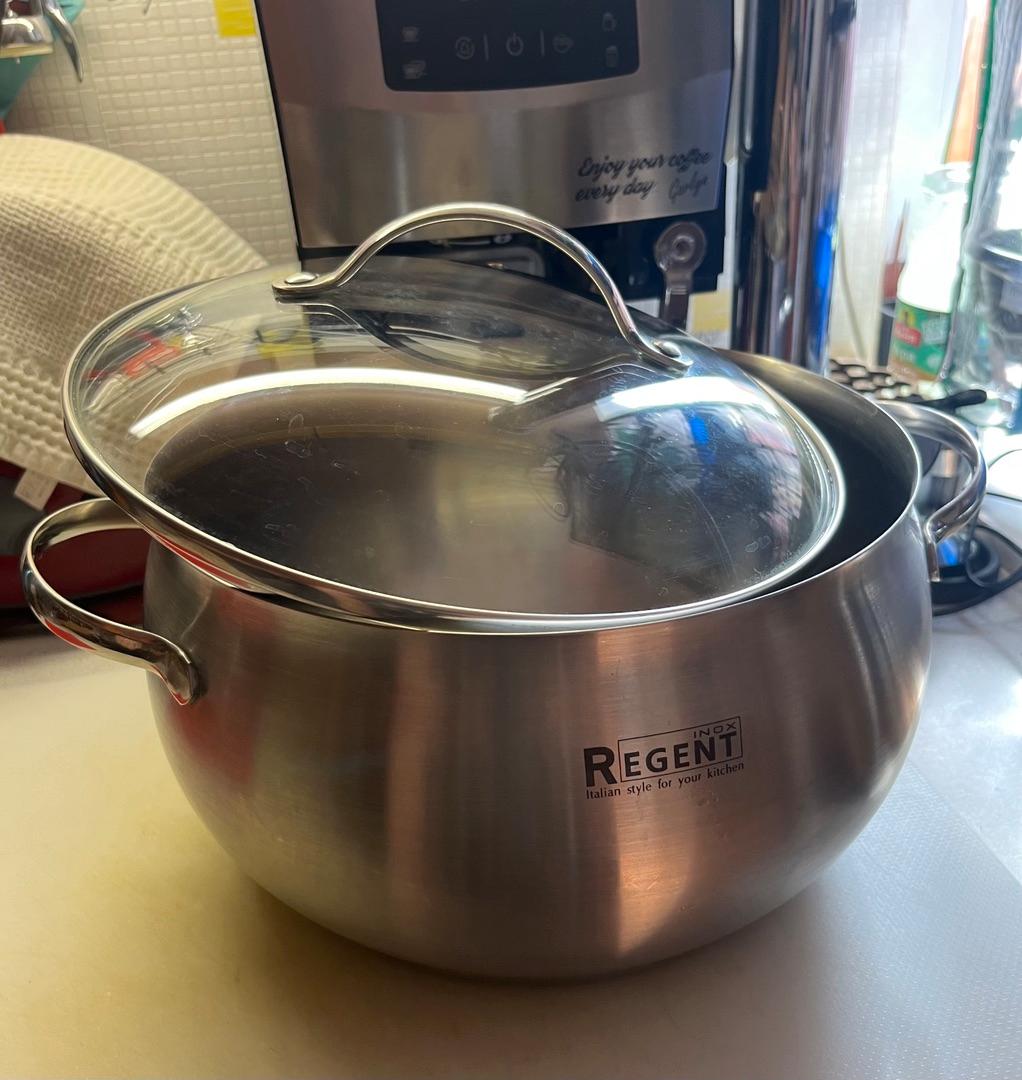 Моя любимица, вместительная, материал хороший, все качественно сделано, в комплекте шла крышка. Сначала купила одну кастрюлю, а потом не удержалась и заказала еще одну, на днях еще маме поеду забирать. Кастрюля действительно классная. Выглядит приятно, без рисунков, цвет металлический, матовая полировка. Кастрюля вмещает в себя 3,5 литра. Достаточно большая. В комплекте стеклянная крышка. Кастрюля с толстым дном, именно поэтому она мне так приглянулась, остывает долго. Прекрасно справляется со всем процессом готовки.