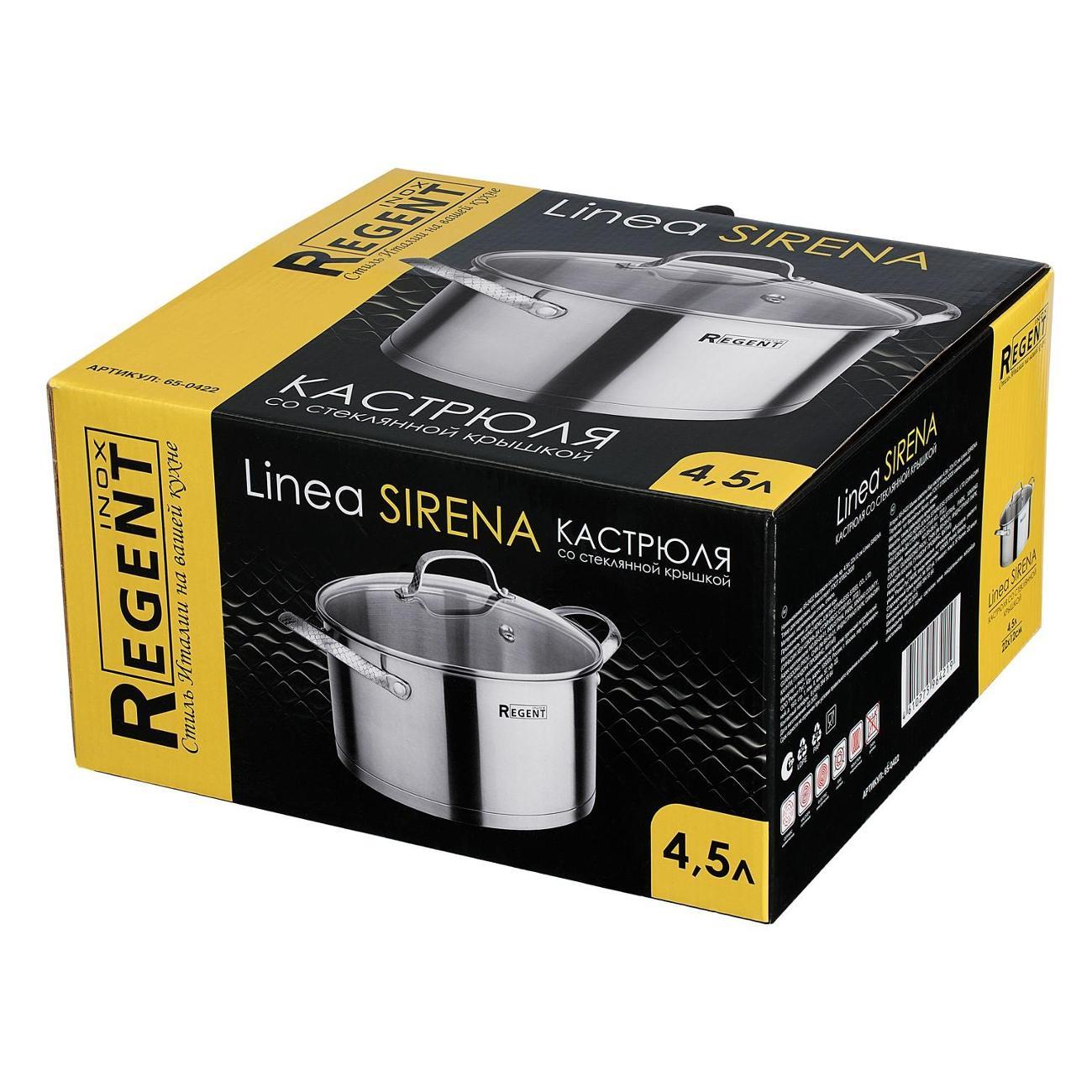 Вы можете купить Кастрюля 22см/4.5л с крышкой REGENT inox SIRENA в магазинах М.Видео по доступной цене. Кастрюля 22см/4.5л с крышкой REGENT inox SIRENA: подробное описание, фото и отзывы реальных покупателей, характеристики, возможность скачать инструкции и подобрать аксессуары.