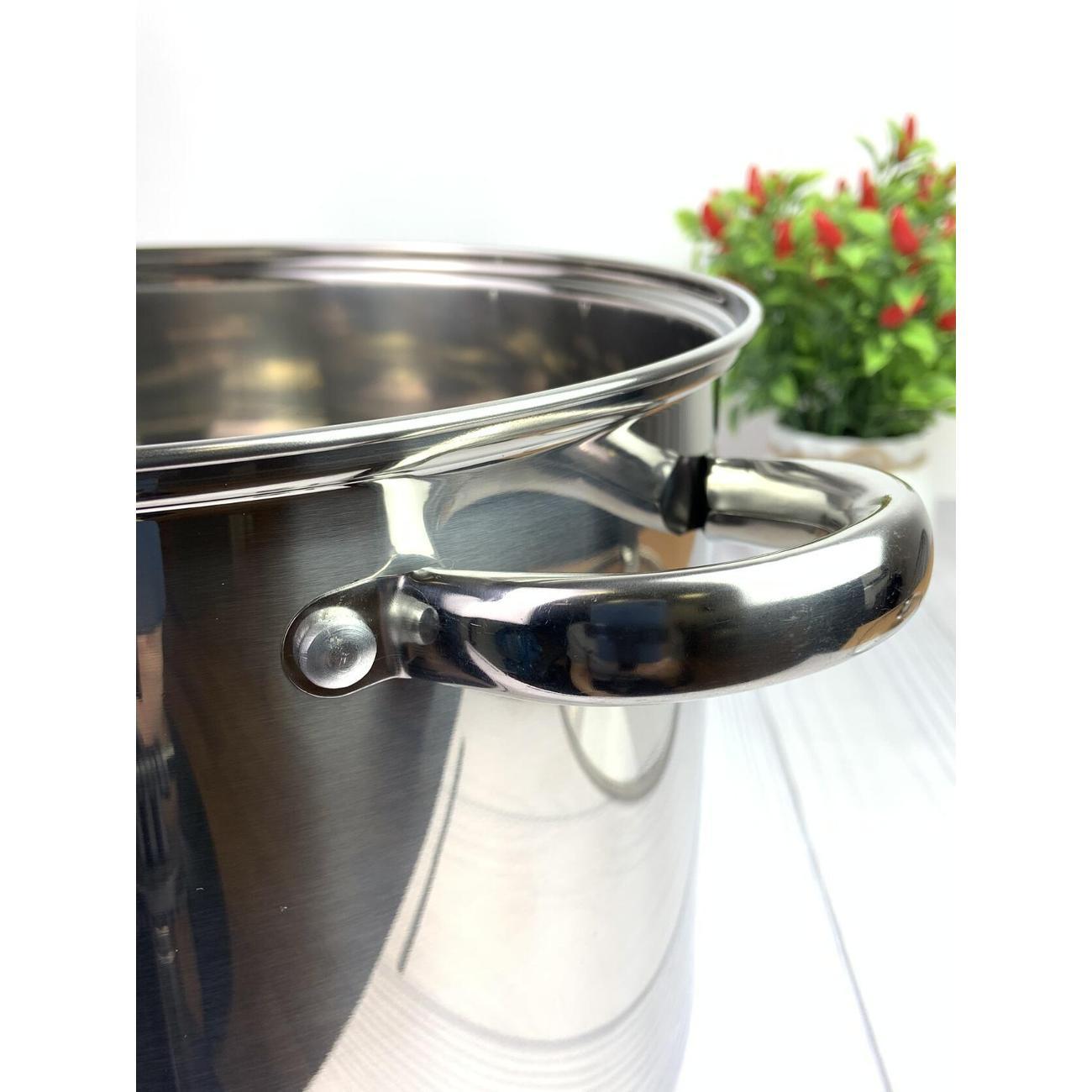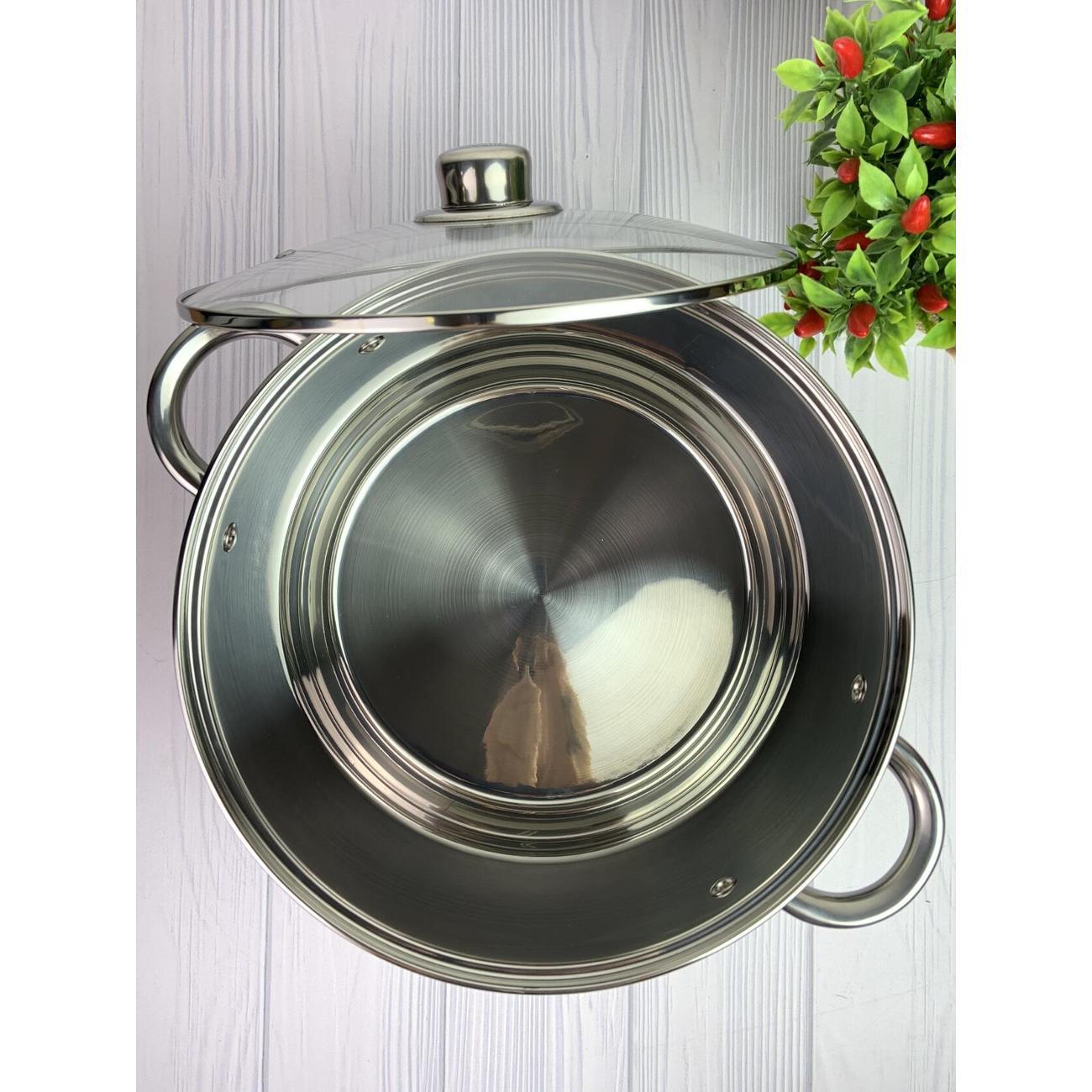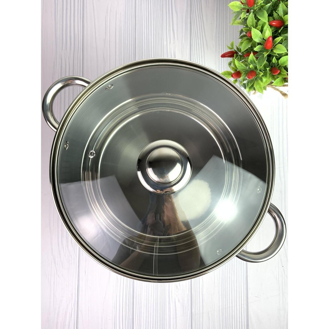 Кастрюля 10 литров из нержавеющей стали со стеклянной крышкой 26 см, высота борта 21 см.