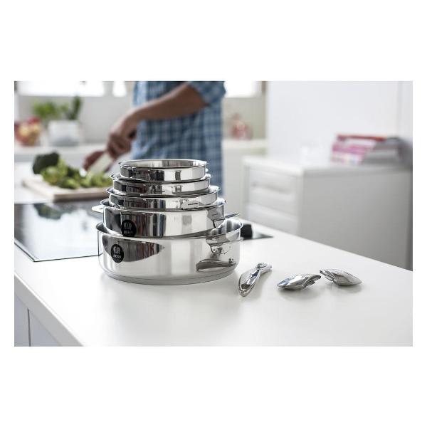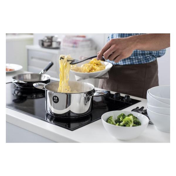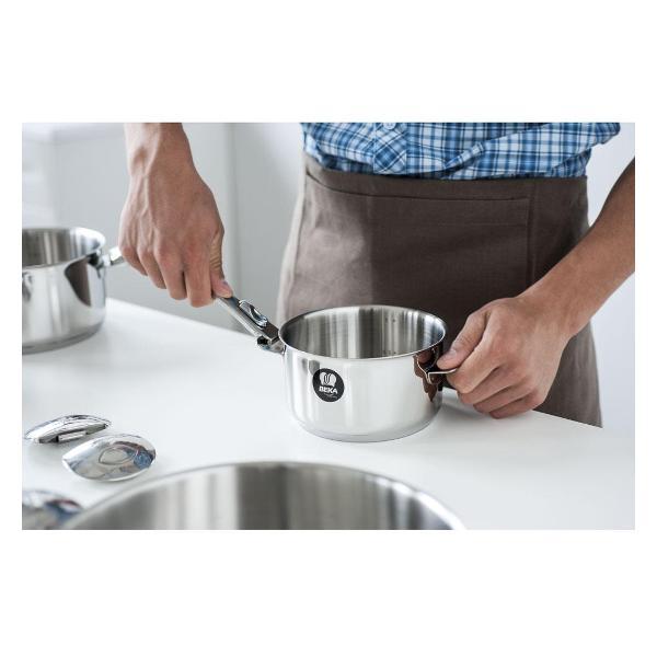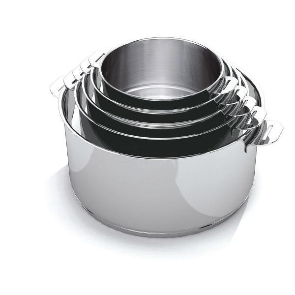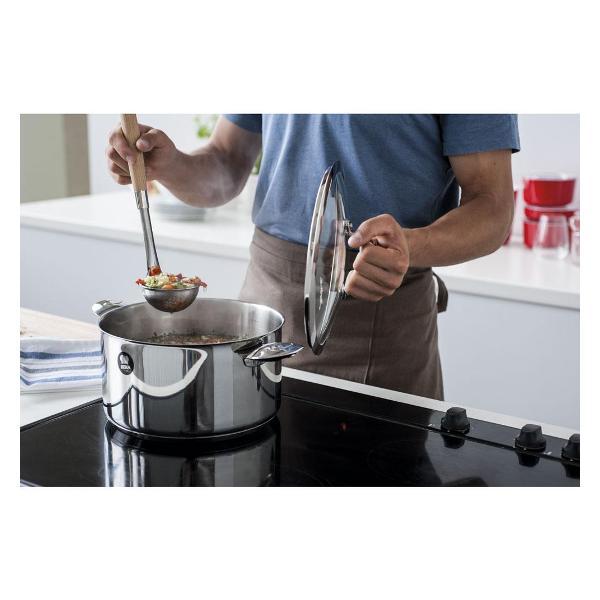 Кастрюля Beka Evolution 12326204 с серебристым корпусом из нержавеющей стали и трехслойным капсульным дном из стали и алюминия подходит для использования на любых поверхностях, в том числе индукционных, и в духовом шкафу. На внутренней стороне предусмотрены мерные деления. Модель дополнена съемными ручками. Разрешается мойка в посудомоечной машине. Диаметр дна — 20 см, высота стенок — 11 см, вес — 1,06 кг.