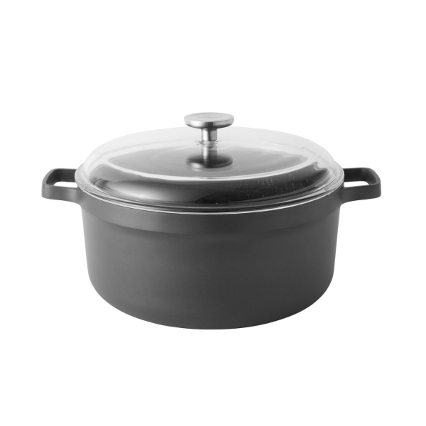 Кастрюля BergHOFF Gem емкостью 7,3 л изготовлена из литого алюминия, антипригарное покрытие предотвращает пригорание и прилипание пищи. Посуду можно использовать для жарки, варки, томления и запекания в духовке. Утолщенное дно обеспечивает равномерный нагрев. Эргономичные ручки не выскальзывают из рук. Крышка плотно прилегает к посуде, предотвращая выкипание жидкости. Кастрюлю легко мыть вручную.