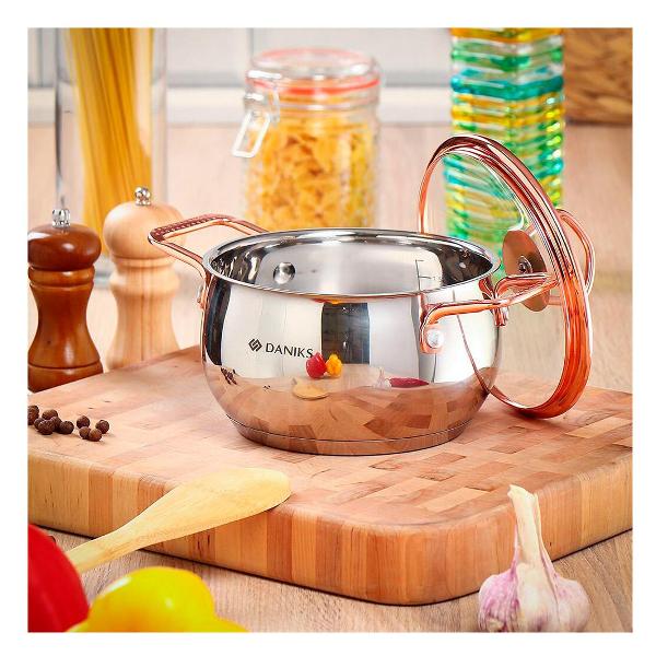 Кастрюля Daniks «Карлин» GS-01332G-16 (397607) произведена из высококачественного нержавеющего сплава, устойчивого к механическим повреждениям и появлению ржавчины. Зеркальное внешнее покрытие и медный цвет ручек придают изделию интересный внешний вид. Внутри нанесена мерная шкала для точного следования рецептам приготовления.