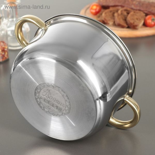 Кастрюля «Доляна Роскошь» изготовлена из высококачественной нержавеющей стали. Это прочный и экологичный материал, который не подвержен коррозии и не меняет вкус пищи, поскольку не вступает с ней в химическое взаимодействие.