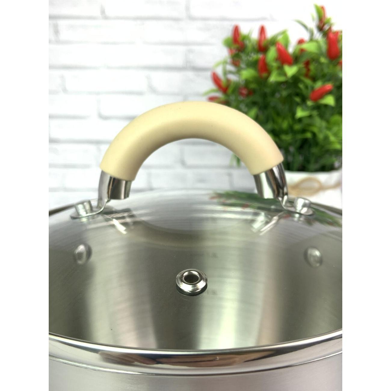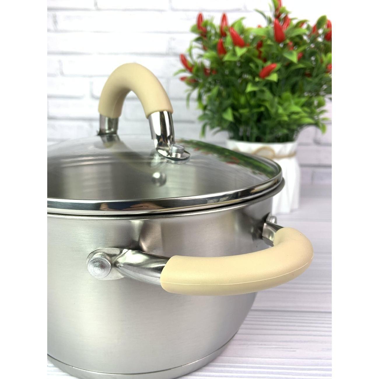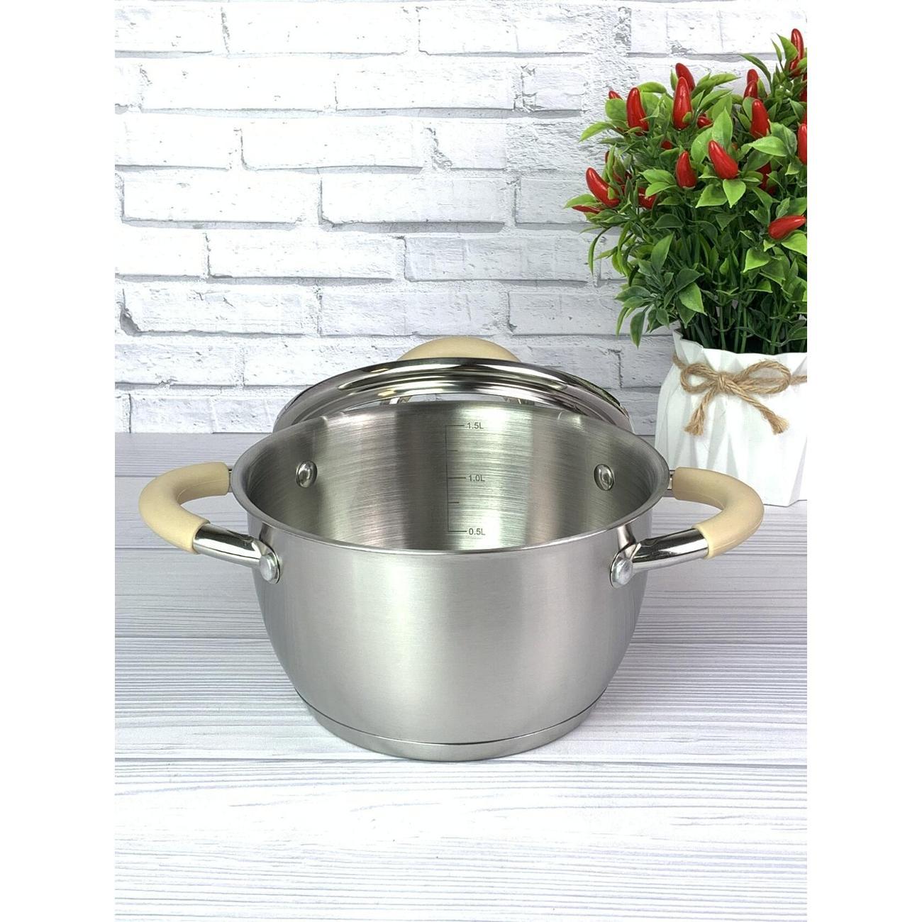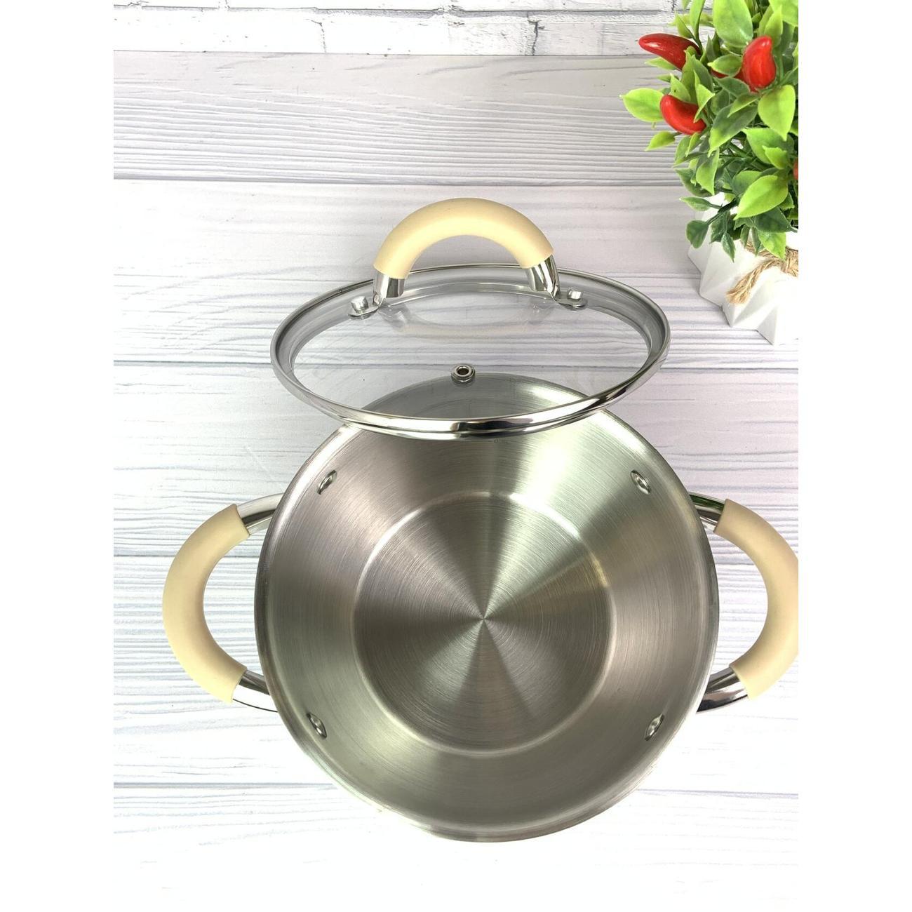 Удобная кастрюля с толстым дном и ненагревающимися ручками 3,3 литра из нержавеющей стали.