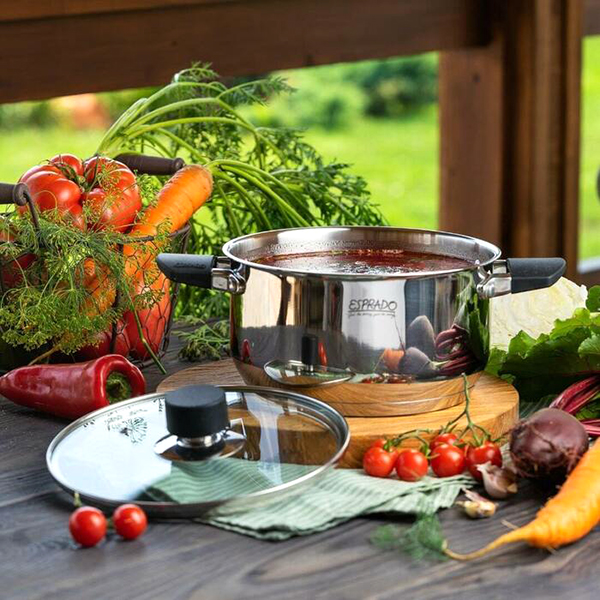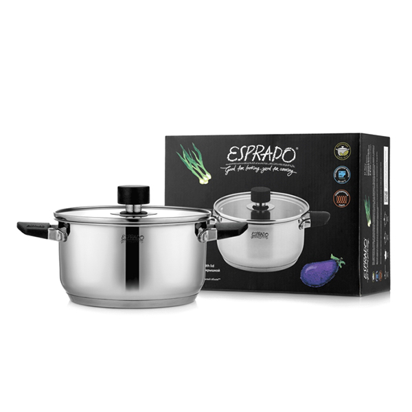 Кастрюля Esprado емкостью 2,4 л подойдет для всех типов плит, включая индукционные. Посуда изготовлена из нержавеющей стали, поэтому ей не страшны ржавчина, царапины, мытье в посудомоечной машине. Удобные силиконовые ручки не нагреваются. Прочная крышка плотно прилегает к емкости, внутри кастрюли есть мерная шкала. Толстое дно обеспечивает равномерный прогрев пищи, предотвращая пригорание.