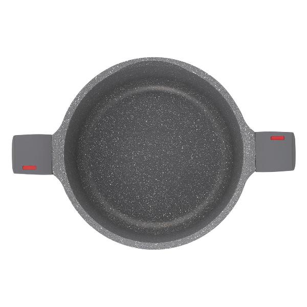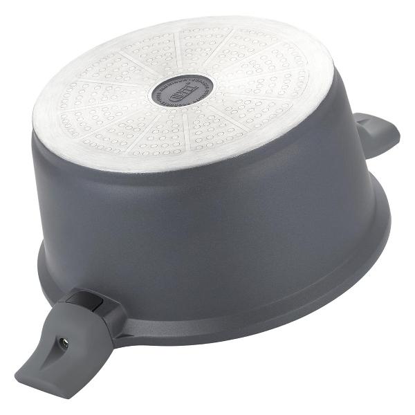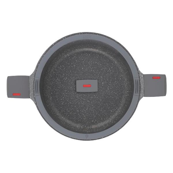 4) Про крышку: неплотно прилегает к стенкам кастрюли (люфт 4 мм), ширина перфорированной прорези слива воды (для макарон и т. п.) 53 мм, ширина прорези без перфорации 70 мм, видно как кипит вода (стеклянная крышка абсолютно плоская), нет гравировки производителя на ручке (вместо этого нанесена краска на стекло), вес 0,6 кг, высота ручки 42 мм, общая высота крышки 56 мм. В остальном крышка аналогична модели Gipfel Paula 1048.