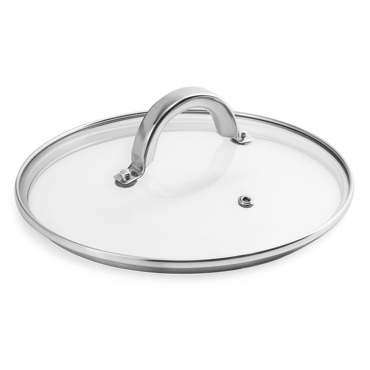 Крышки диаметром 16, 20 и 24 см изготовлены из закаленного стекла, что дает возможность контролировать процесс готовки. Они дополнены клапанами для принудительного выхода пара. Ручки изолированы, что исключает их нагрев при эксплуатации.