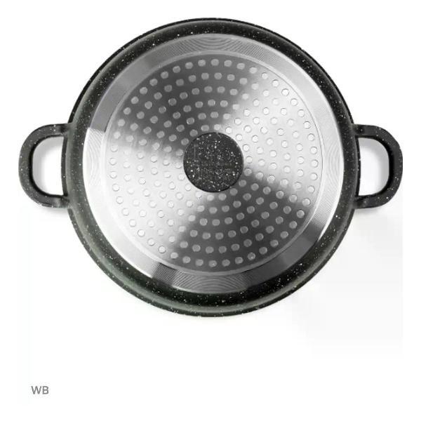 Кулинарная линейка «Rio» торговой марки Lara, представляет кухонные аксессуары превосходного качества для ежедневной эксплуатации. Мрамор в дизайне выступает в роли совершенного акцента. Изделие соответствует всем необходимым требованиям для комфортного приготовления пищи. Антипригарное покрытие исключает пригорание, что даёт возможность использовать минимум масла. Блюда получаются более здоровыми и соответствующими диетическому питанию. Помимо этого, после применения вы с легкостью сможете очистить предмет от остатков продуктов. Термокастрюля изготовлена из качественного литого алюминия. Благодаря этому материалу, она равномерно распределяет тепло, что позволяет готовить быстро и без лишних затрат времени. Алюминий обладает высокой теплопроводностью, что делает процесс кулинарии более экономичным с точки зрения энергопотребления. Кострюля оснащена крышкой с паровыпуском, которая помогает сохранить тепло и аромат внутри. Кастрюля с крышкой идеально подходит для любого типа плит, включая индукционные. Кастрюля с антипригарным покрытием - это неотъемлемый атрибут любой кухни. Она отличается стильным внешним видом, отличным качеством и удобством использования.