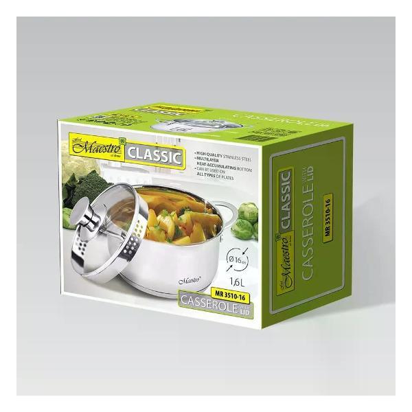 Вы можете купить Кастрюля Maestro MR-3510-16 в магазинах М.Видео по доступной цене. Кастрюля Maestro MR-3510-16: подробное описание, фото и отзывы реальных покупателей, характеристики, возможность скачать инструкции и подобрать аксессуары.