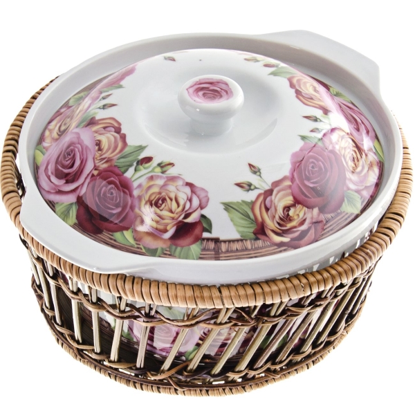 Для подачи готовых блюд посуда снабжена плетёной подставкой из ротанга. Она защитит стол от повреждений и будет оригинально смотреться.