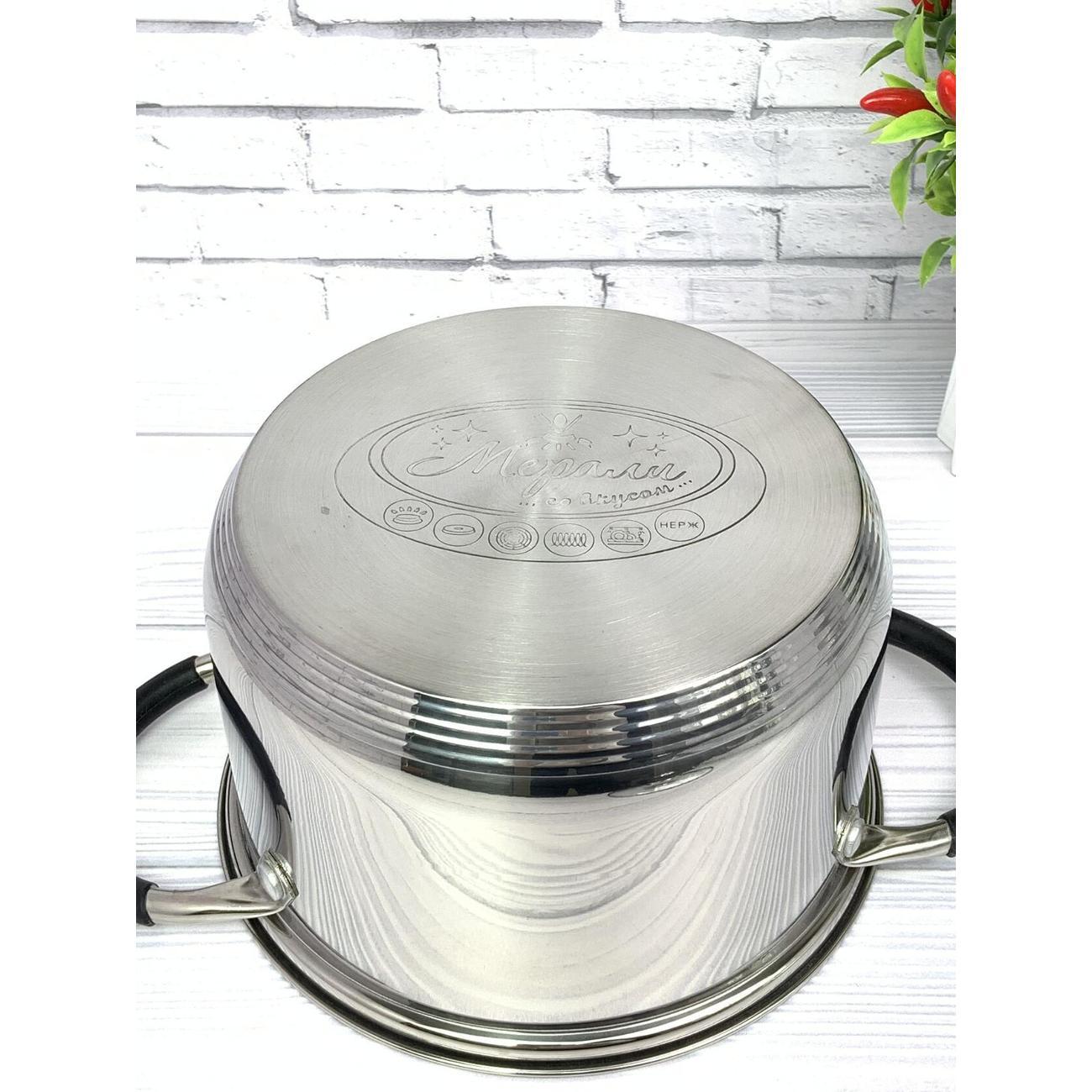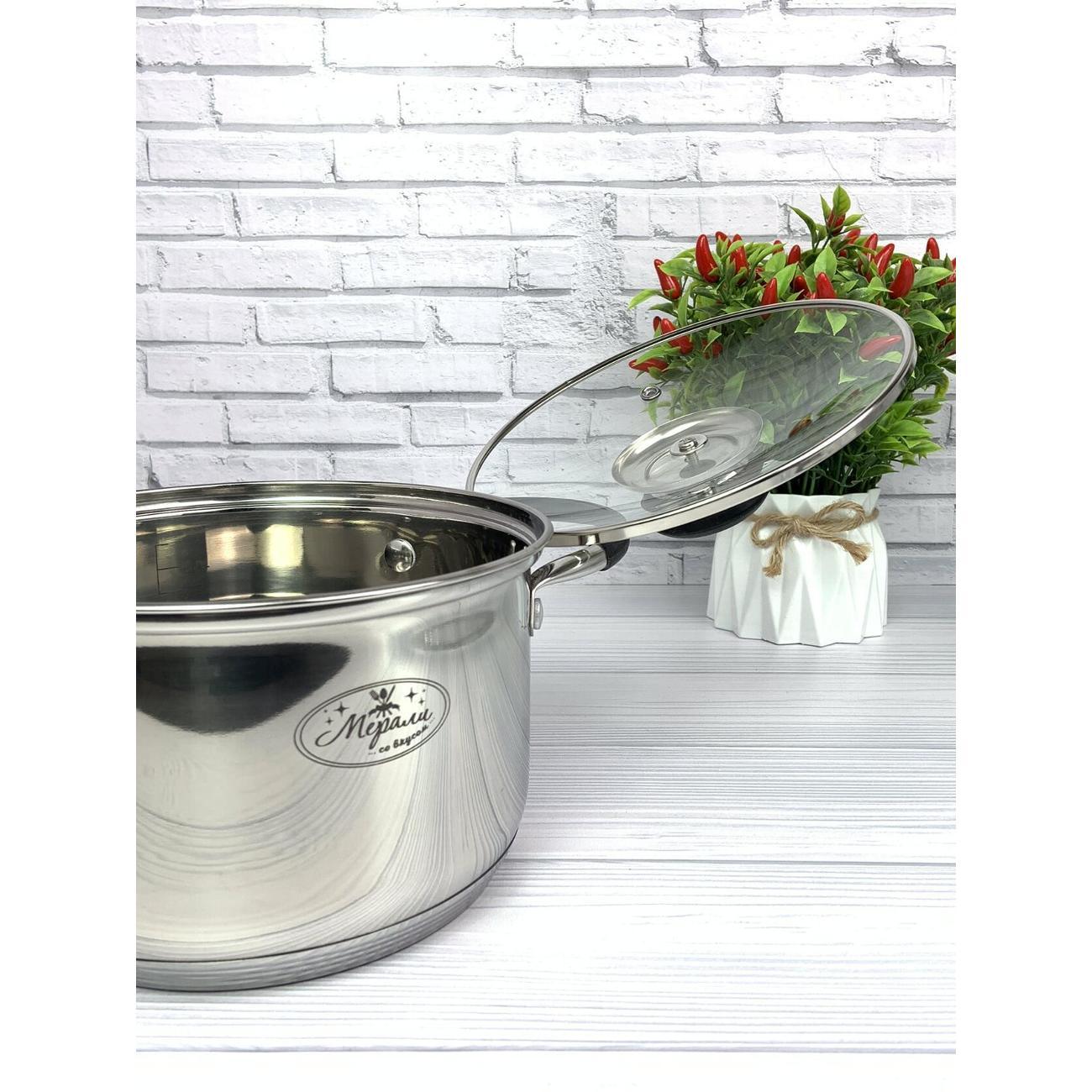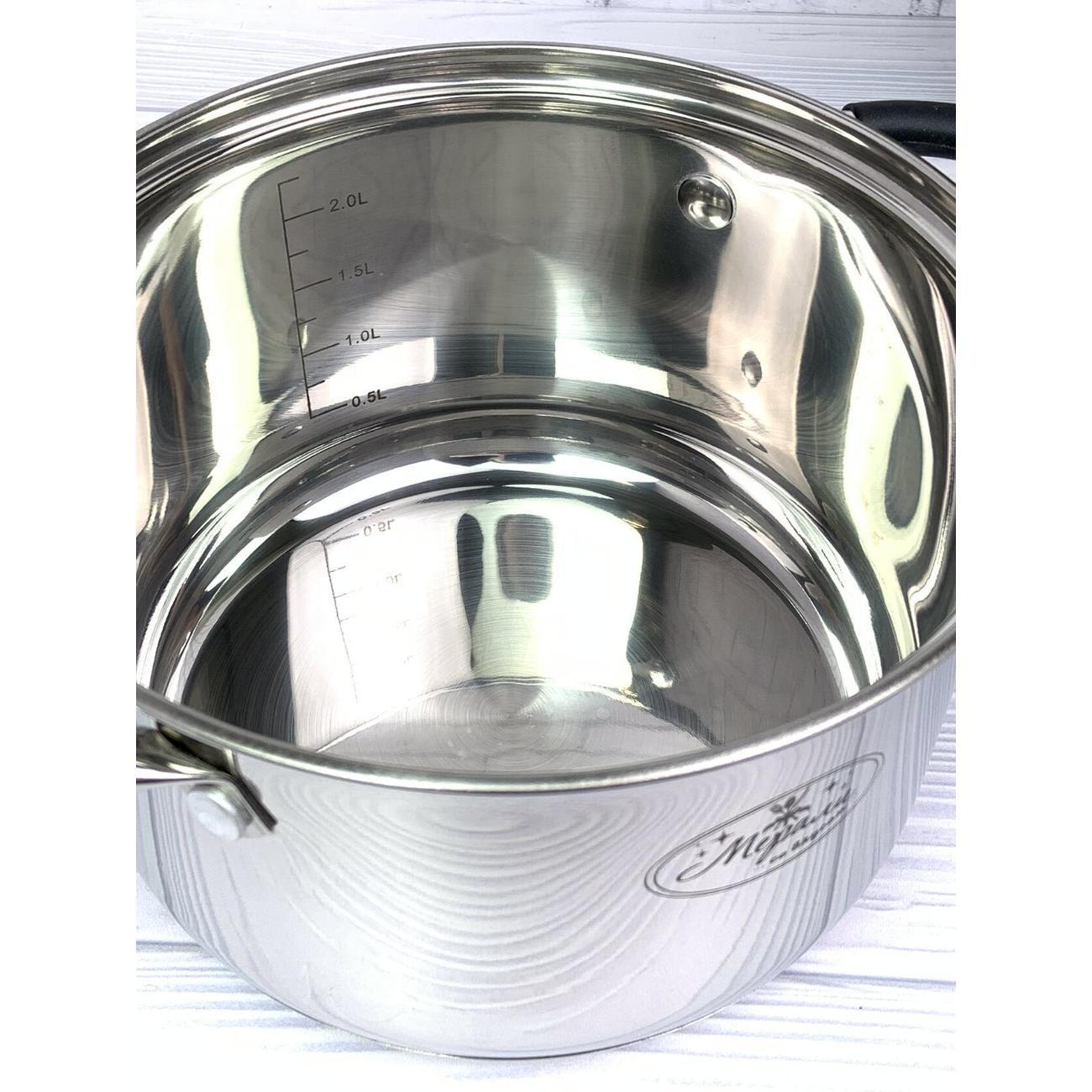 Кастрюля из нержавеющей стали имеет внутреннюю шкалу определения объема жидкости, что ускоряет процесс приготовления пищи.