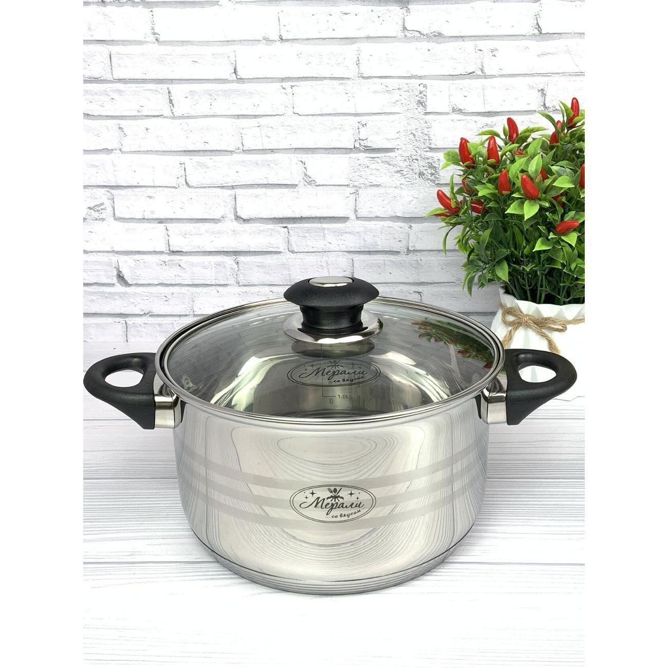 Крышка из термостойкого стекла с отверстием для отведения пара выдерживает резкий перепад температур и обладает высокой термоустойчивостью. Кастрюля из нержавеющей стали имеет внутреннюю шкалу определения объема жидкости, что ускоряет процесс приготовления пищи.