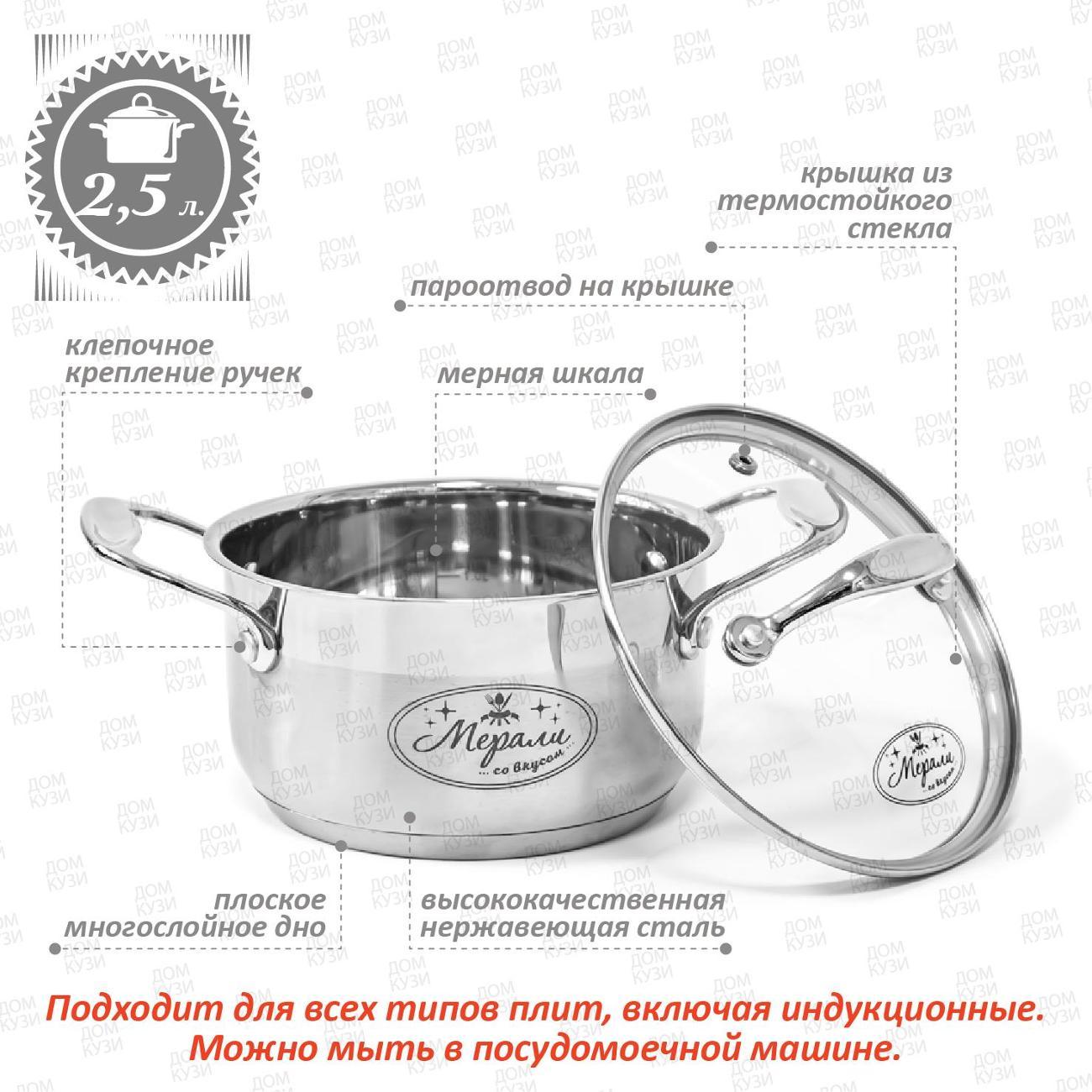Кастрюля 2,5 л нержа будет отличным подарком для Вас и ваших близких по любому поводу и на любой праздник! Посуда набор Мерали станет помощником на вашей кухне.