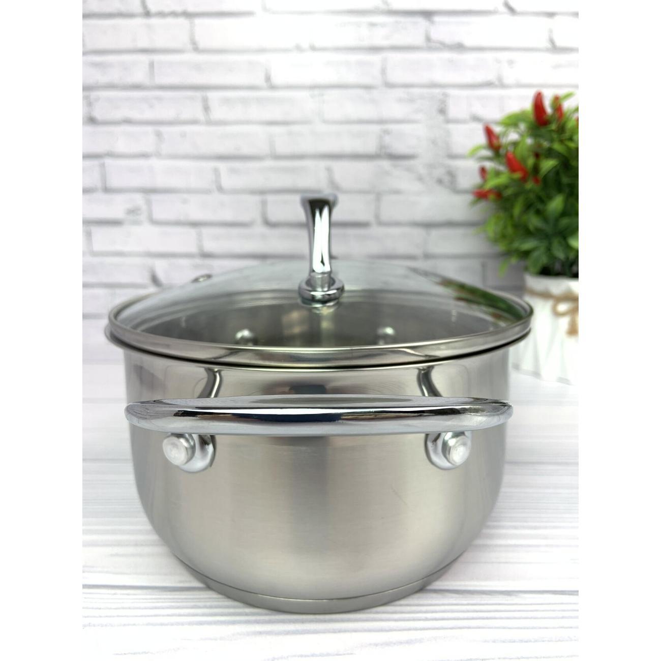 Крышка из термостойкого стекла с отверстием для отведения пара обладает высокой термоустойчивостью. Посуда подходит для использования на любых типах плит, включая индукционные. Можно мыть в посудомоечной машине. Набор посуды из нержавеющей стали для индукционной плиты.