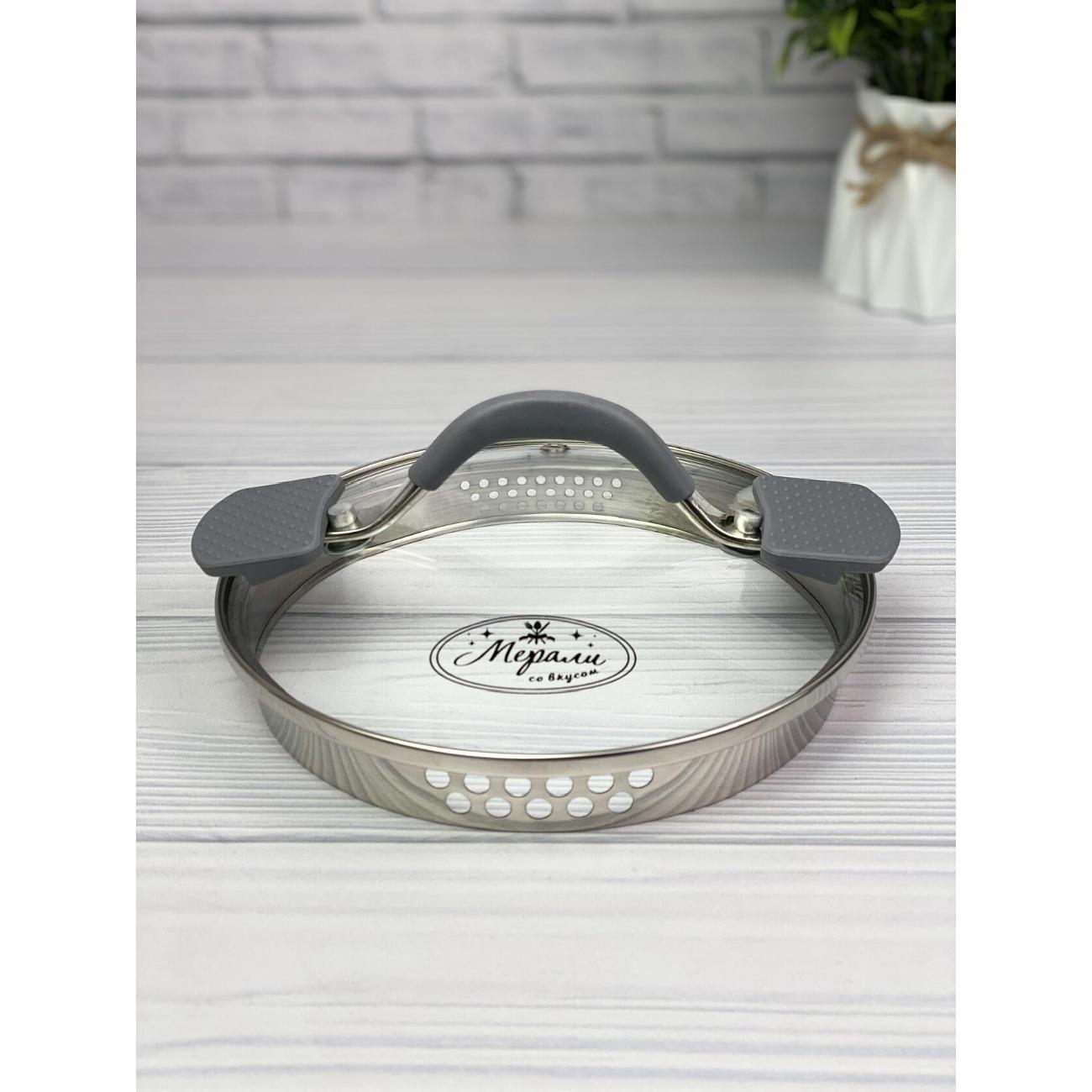 Кастрюля со сливом и крышкой-дуршлаг Мерали 4,8 литра из нержавеющей стали со стеклянной крышкой 22 см, высота борта 23 см.
