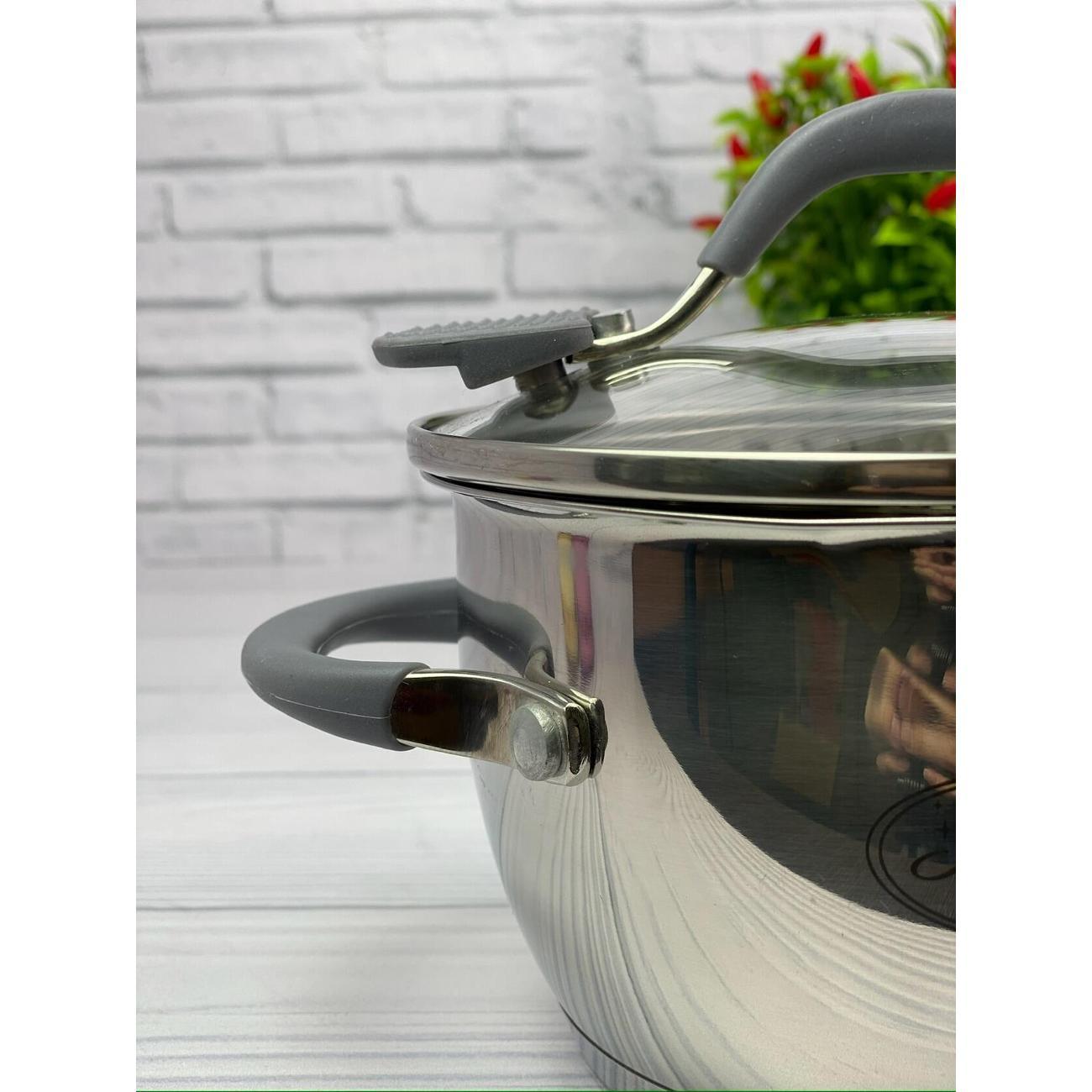 Набор кастрюль для индукционной плиты невероятно удобны в использовании, за ними легко и просто ухаживать. Кастрюля 6,3 литра с толстым дном надолго сохранит тепло ваших блюд.