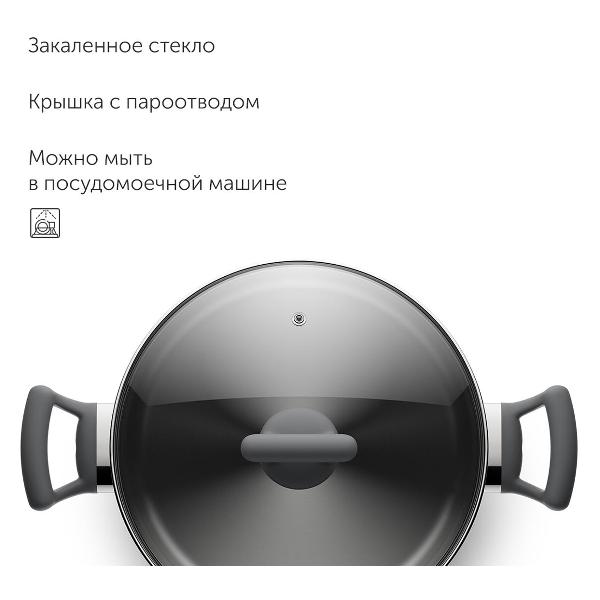 Благодаря трехслойному капсульному дну кастрюля быстро, равномерно нагревается. После окончания процесса готовки медленно остывает, сохраняя температуру готовых продуктов.