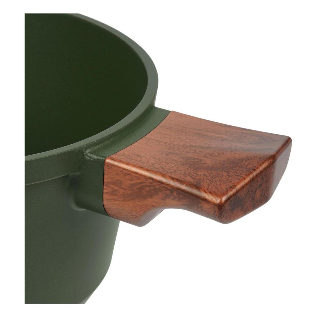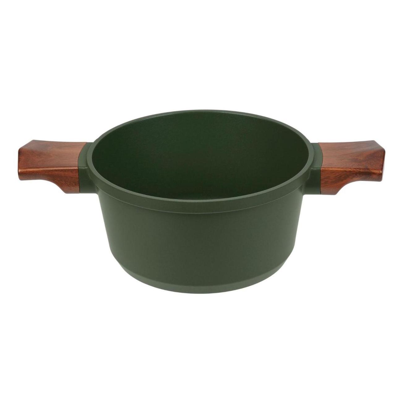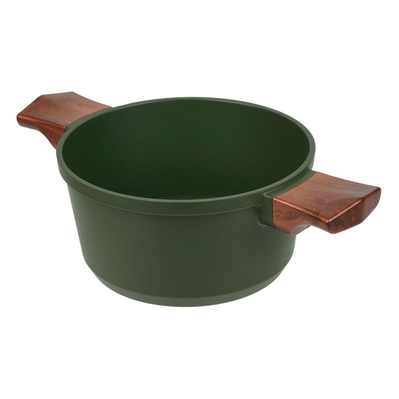Хорошая небольшая кастрюлька. Смотрится интересно, необычный цвет и большущие ручки под дерево. Я сначала не поняла даже зачем они такие, а потом оценила когда полную снимала с плиты - очень удобно. Прихватки не нужны. Стенки и дно толстые, литые - можно и варить, и тушить. Я опробовала на булгуре с курицей - хорошо получилось, ничего не пригорело.