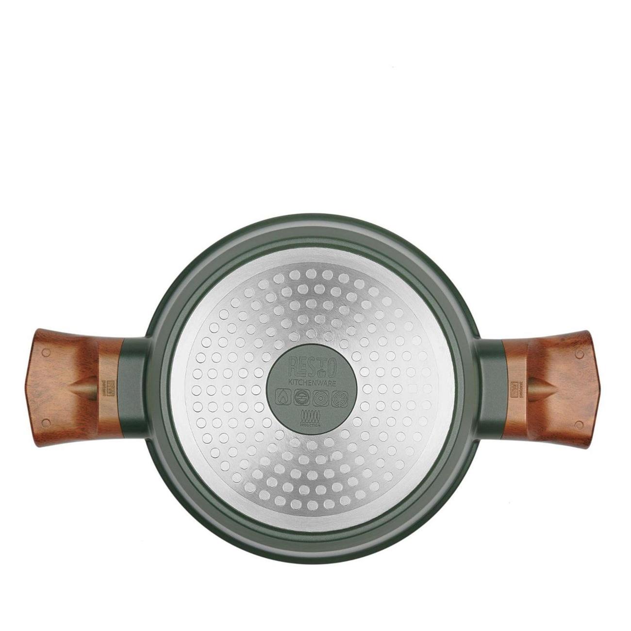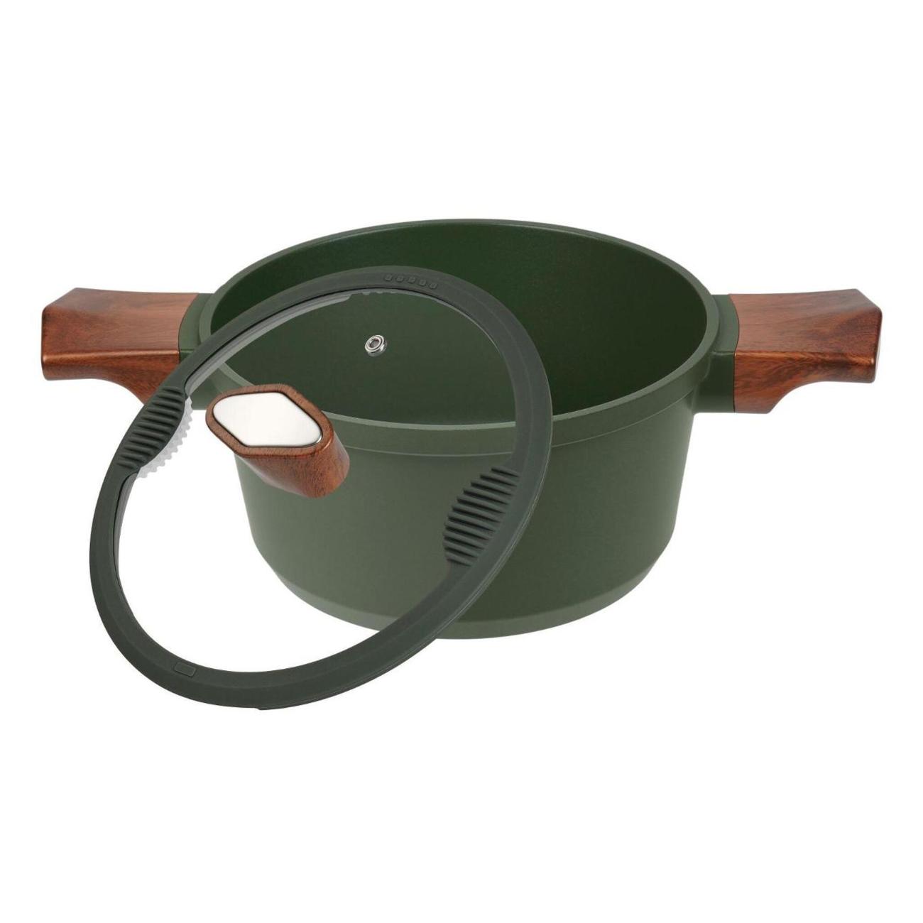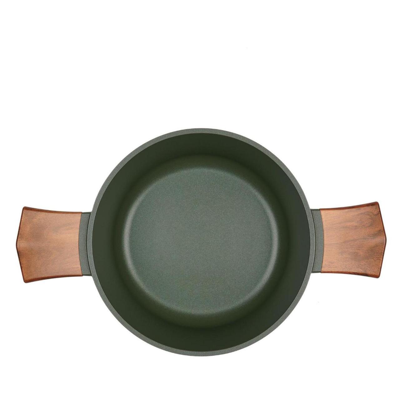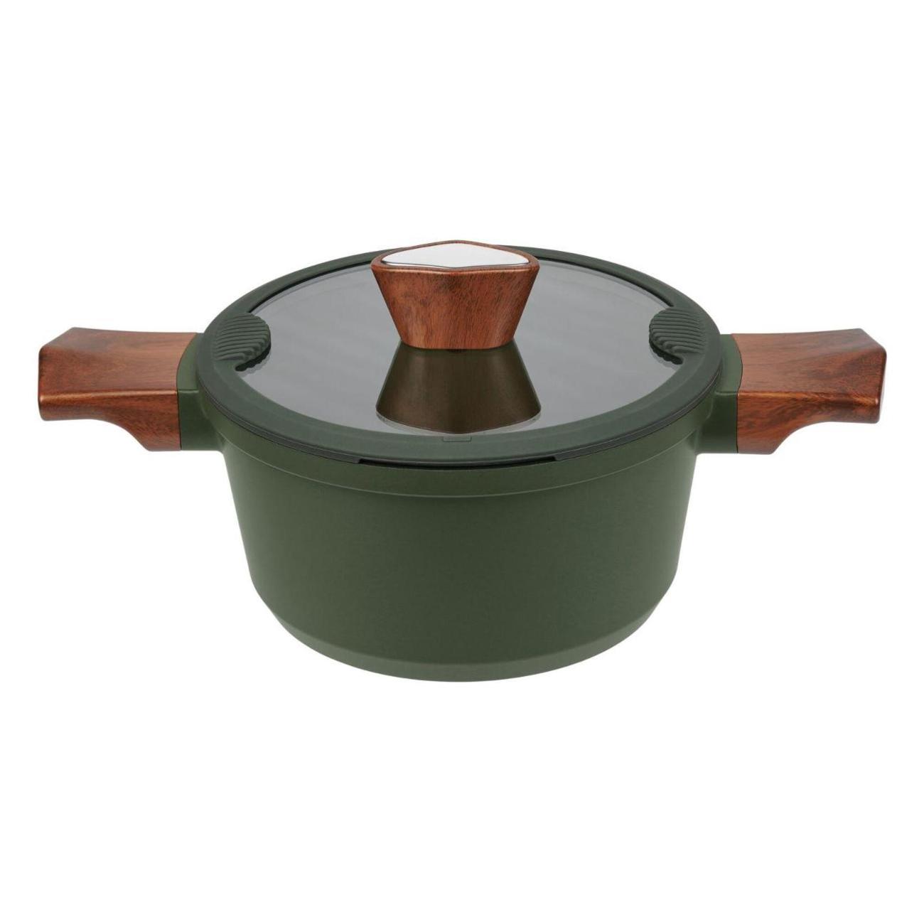 Хорошая небольшая кастрюлька. Смотрится интересно, необычный цвет и большущие ручки под дерево. Я сначала не поняла даже зачем они такие, а потом оценила когда полную снимала с плиты - очень удобно. Прихватки не нужны. Стенки и дно толстые, литые - можно и варить, и тушить. Я опробовала на булгуре с курицей - хорошо получилось, ничего не пригорело.