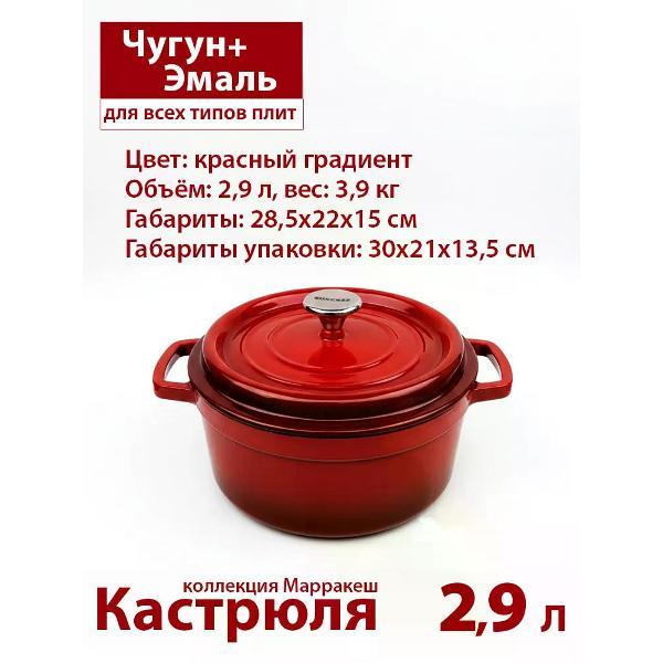 Кастрюля Success HOME 22 см, 2.9 л, # #Марракеш#, Красный градиент