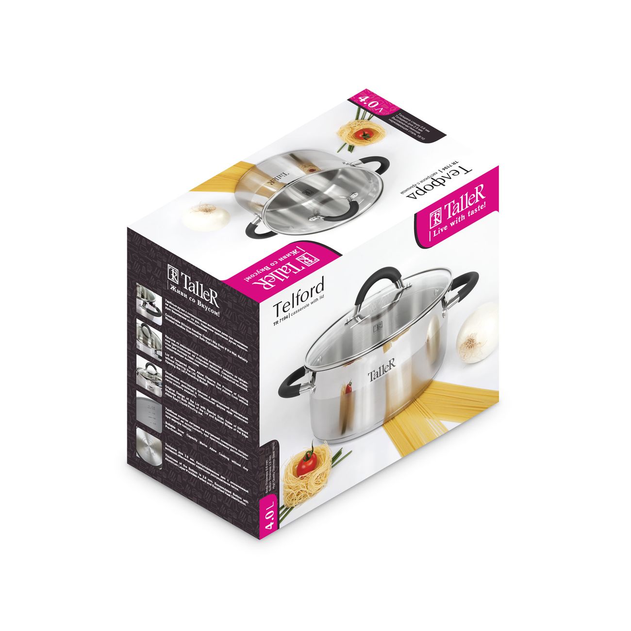 Кастрюля TalleR серии «Телфорд» подойдёт для приготовления первых блюд, тушения и томления, но особенно удобна будет для варки картофеля, макарон, овощей и прочих продуктов, предполагающих слив воды. Аккуратно сделать это позволит особая форма края ёмкости.