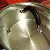 Крышка, сделанная из стекла, снабжена отверстием для вывода пара и усилена стальным ободком. Ручки закреплены надёжными клёпками и оснащены силиконовыми накладками. Они не нагреваются, так что вы обойдётесь без прихваток. За кастрюлей легко ухаживать: её можно мыть в посудомоечной машине.