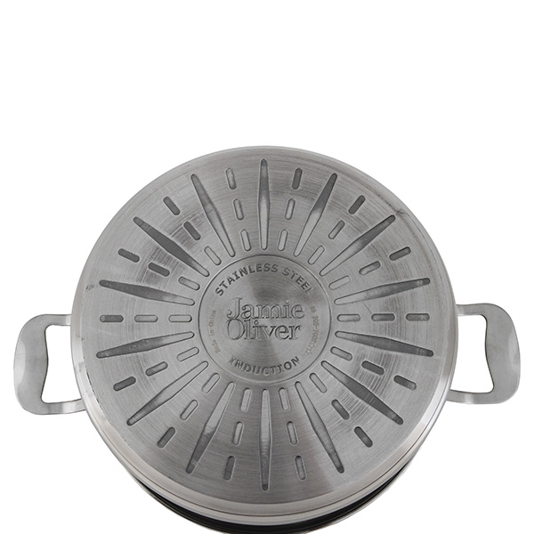 Пользуюсь меньше месяца.Форма удачная, удобно тушить фаршированные овощи.Приобрела набором из 2 кастрюль, которые, благодаря складыванию по типу матрешки, занимают мало места в шкафу. Но есть и минусы!!! Ручки несильно но греются.После пары раз использования изнутри пошла пятнами, нет не ржа, а темные ниеотмывающиеся пятна.И форма крышки не совсем удачная.Между железным ободком и стеклом есть зазор, вот там очень проблемно промыть.