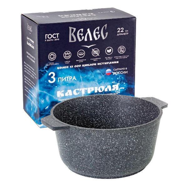 Кастрюля 3л. глубокая из литого алюминия с толстым дном и стенками, ТМ «ВЕЛЕС» серии БАЙКАЛ от Российского производителя, станет незаменимой посудой и надежным помощником на вашей кухне.