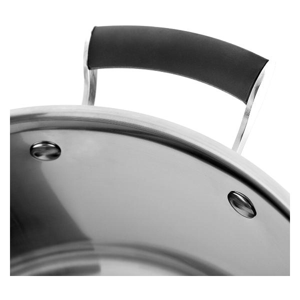 Кастрюля Vensal VS1513 из коллекции Nuances de Gout обладает объемом 5,9 л и диаметром 24 см. Она выполнена из прочной легированной стали марки AISI304, которая устойчива к механическим воздействиям и коррозии. Ручки прикреплены к корпусу с помощью заклепок и за счет силиконовых вставок не скользят в ладони. Крышка с силиконовым ободком плотно прилегает к емкости. Внутри кастрюли предусмотрена шкала с делениями, что позволяет точно отмерить количество жидкости. Посуду можно ставить на все виды варочных поверхностей, включая индукционные.